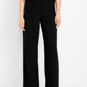Extra High-Waisted Taylor Wide-Leg Trouser Pants: Tailored pleats. Loose fit. Don’t do 9-5 (or 5-9) without them.adjustable waistband, belt loops, hook-and-bar closure, zip fly, hip pockets, functional back welt pocket, wide leg, #791424