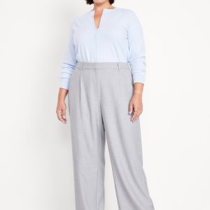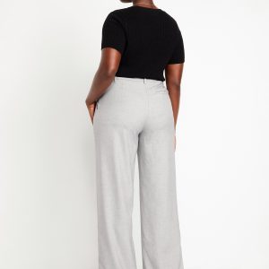 Extra High-Waisted Taylor Wide-Leg Trouser Pants: Tailored pleats. Loose fit. Don’t do 9-5 (or 5-9) without them.adjustable waistband, belt loops, hook-and-bar closure, zip fly, hip pockets, functional back welt pocket, wide leg, #791424