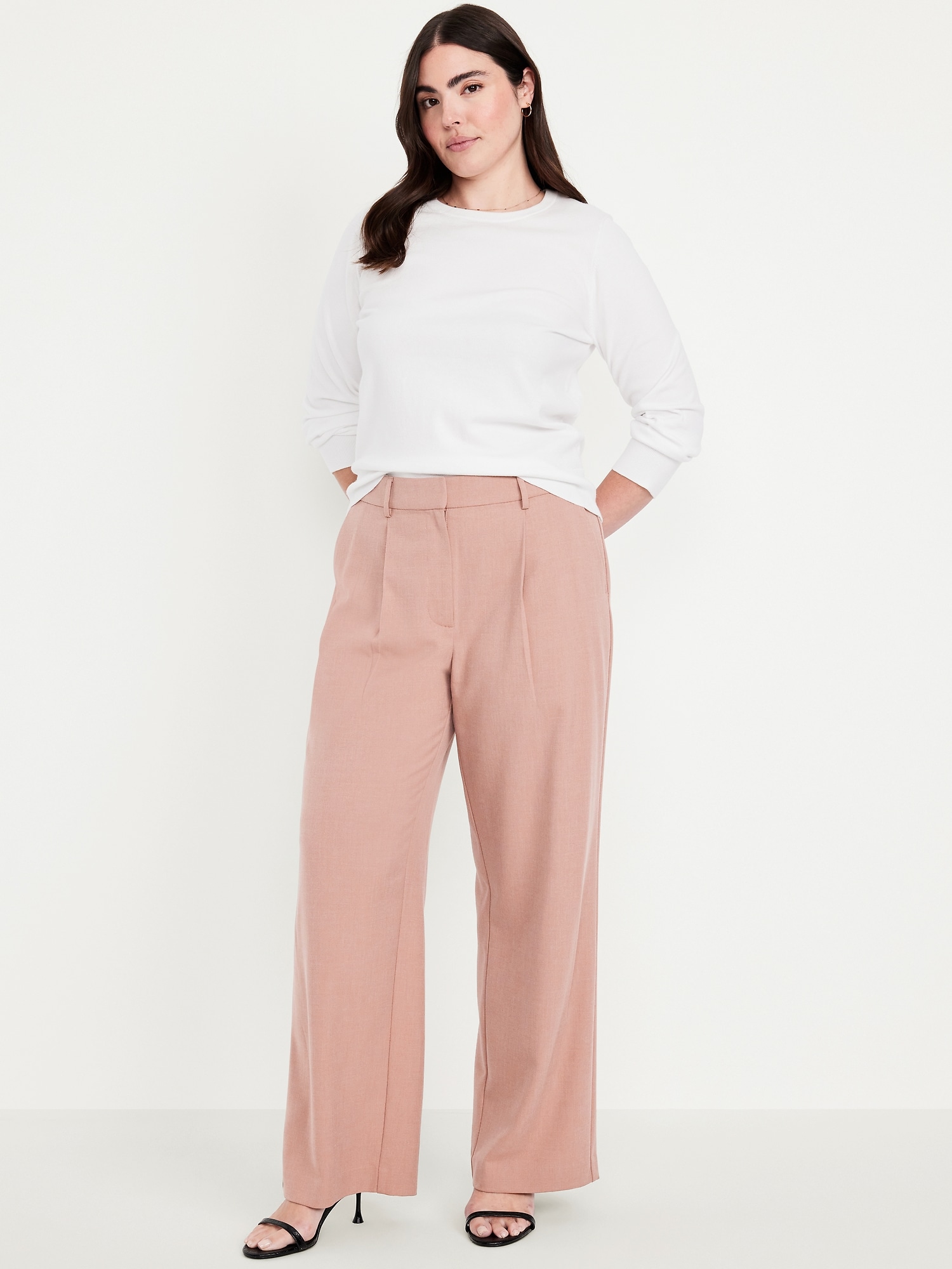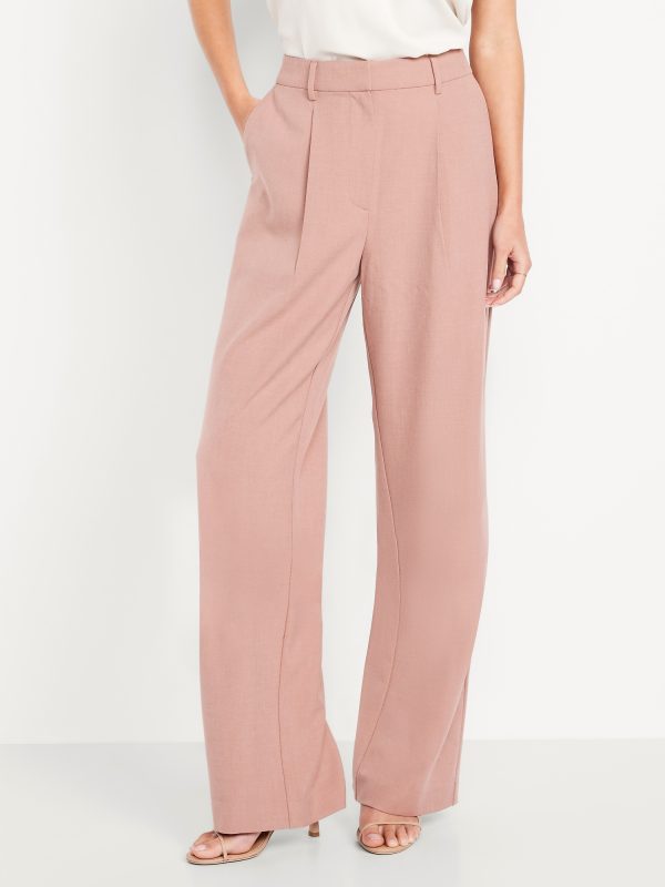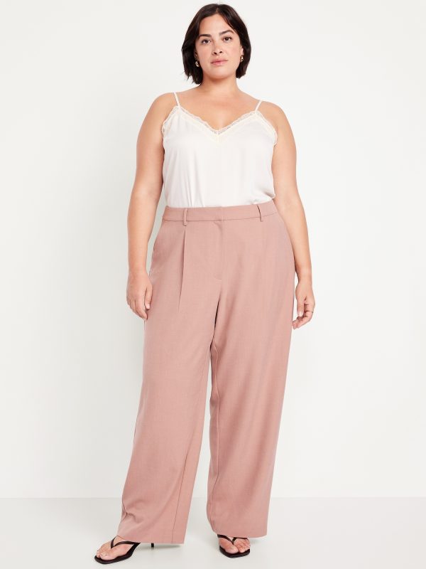 Extra High-Waisted Taylor Wide-Leg Trouser Pants: Tailored pleats. Loose fit. Don’t do 9-5 (or 5-9) without them.adjustable waistband, belt loops, hook-and-bar closure, zip fly, hip pockets, functional back welt pocket, wide leg, #791424