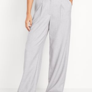 Extra High-Waisted Taylor Wide-Leg Trouser Pants: Tailored pleats. Loose fit. Don’t do 9-5 (or 5-9) without them.adjustable waistband, belt loops, hook-and-bar closure, zip fly, hip pockets, functional back welt pocket, wide leg, #791424