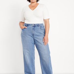 Extra High-Waisted Wide-Leg Jeans: A roomy wide leg with a long silhouette.zip fly, front scoop pockets, back patch pockets, #846999