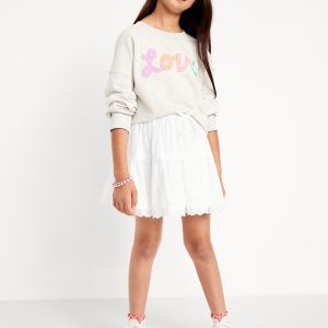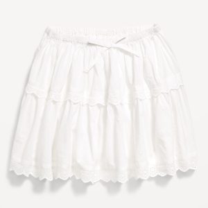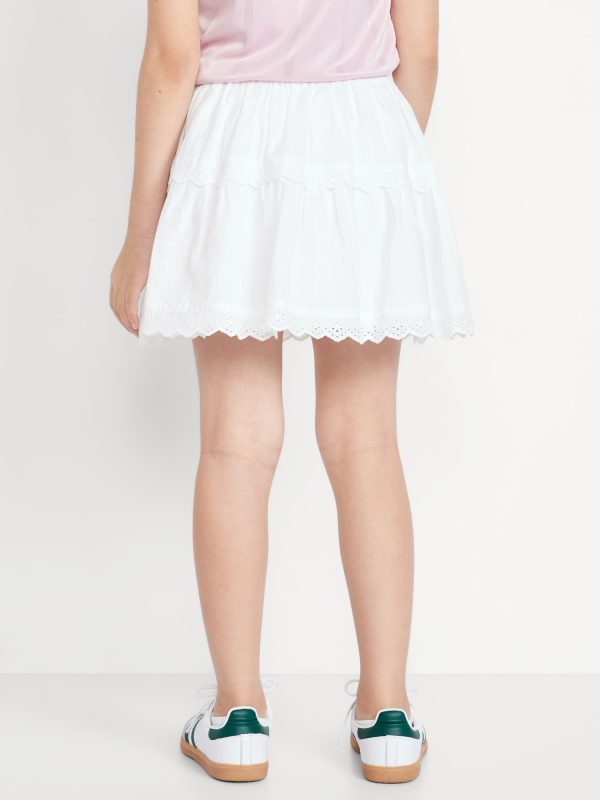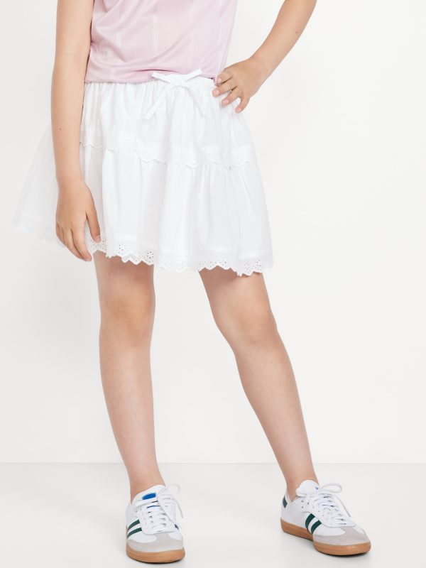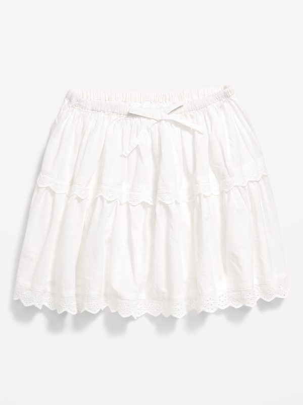 Eyelet Trim Tiered Skirt for Girls: elasticized waistband, decorative bow, eyelet trim, tiered, #766630