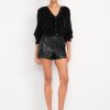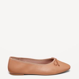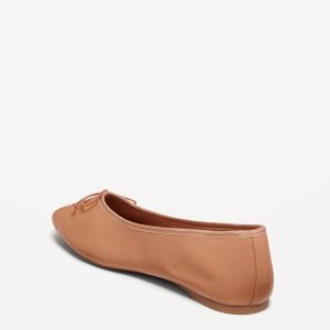 Faux-Leather Ballet Flats: almond-shaped toe, bow-tie accent, firm foot bed, textured outsole, #663674