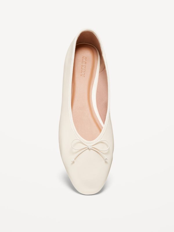 Faux-Leather Ballet Flats: almond-shaped toe, bow-tie accent, firm foot bed, textured outsole, #663674