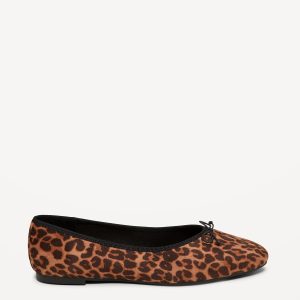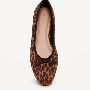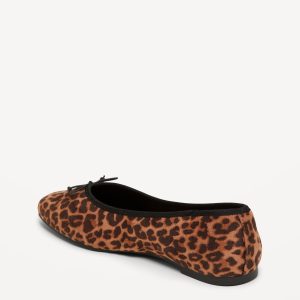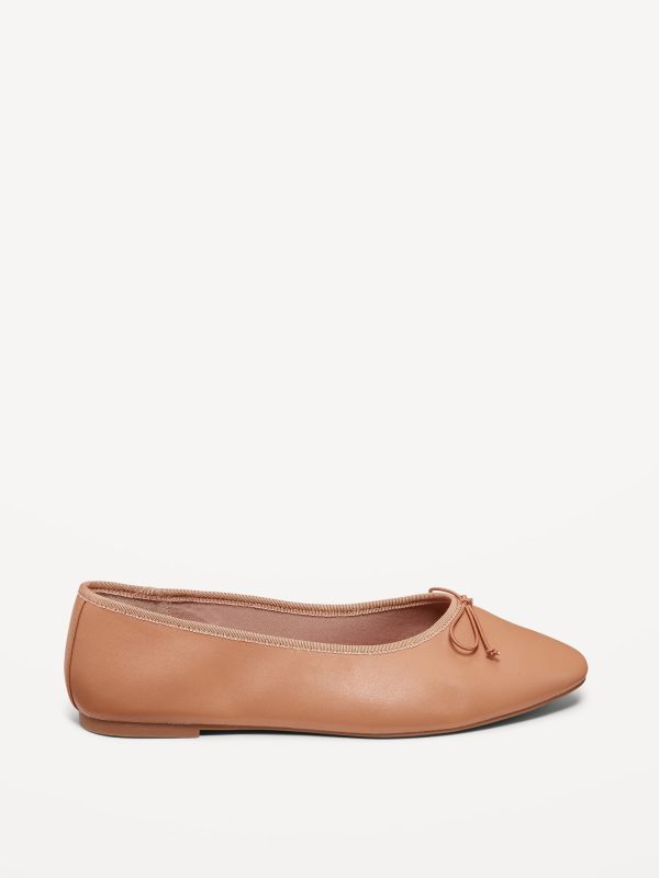 Faux-Leather Ballet Flats: almond-shaped toe, bow-tie accent, firm foot bed, textured outsole, #663674
