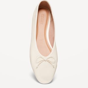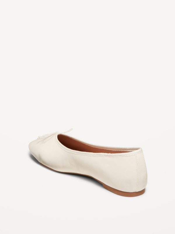Faux-Leather Ballet Flats: almond-shaped toe, bow-tie accent, firm foot bed, textured outsole, #663674