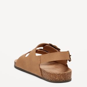 Faux-Leather Buckled Strap Sandals for Toddler Boys: buckled adhesive secure close ankle strap, double buckled straps across foot, faux-cork midsole, cushioned foot bed, #689190