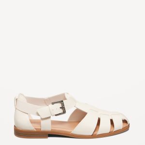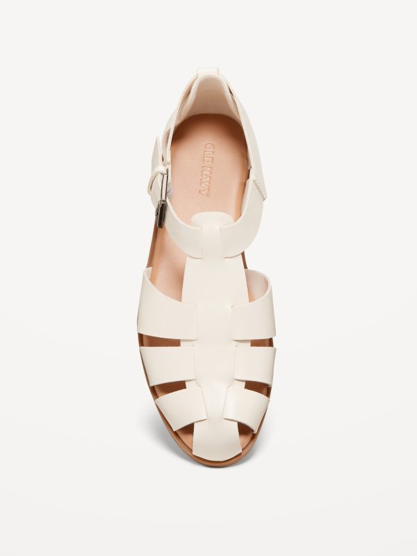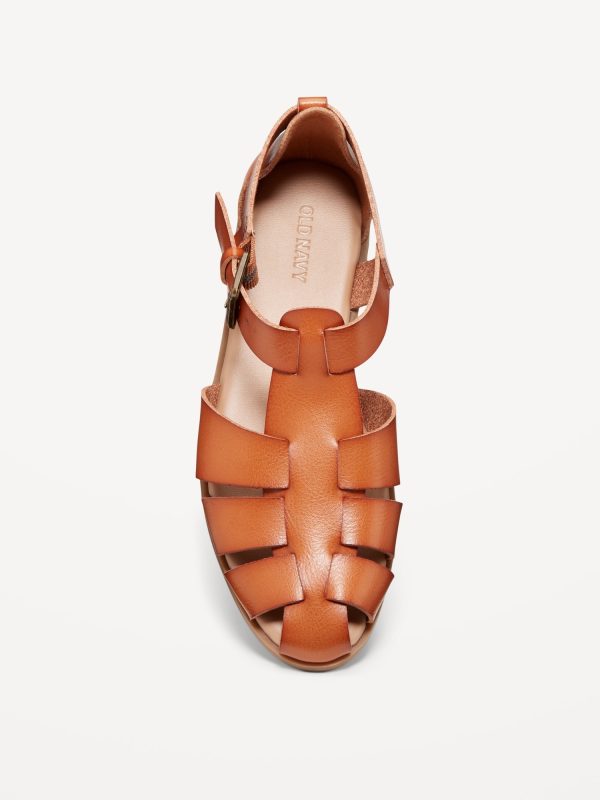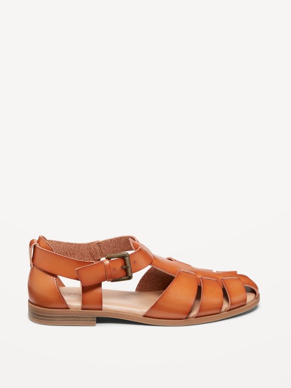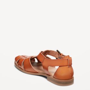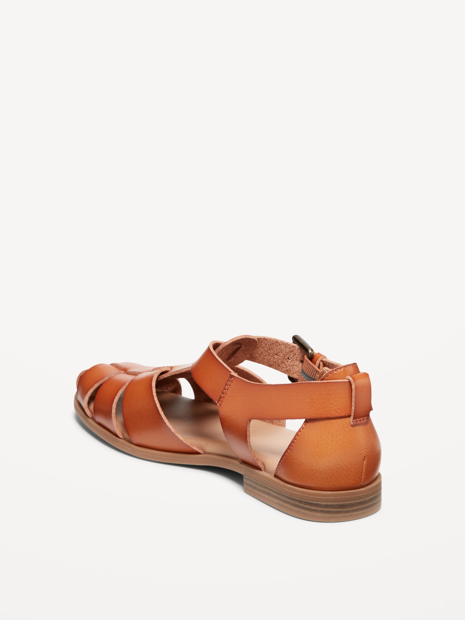 Faux-Leather Fisherman Sandals: faux-leather upper, buckle closure at ankle, cushioned foot bed, #663903
