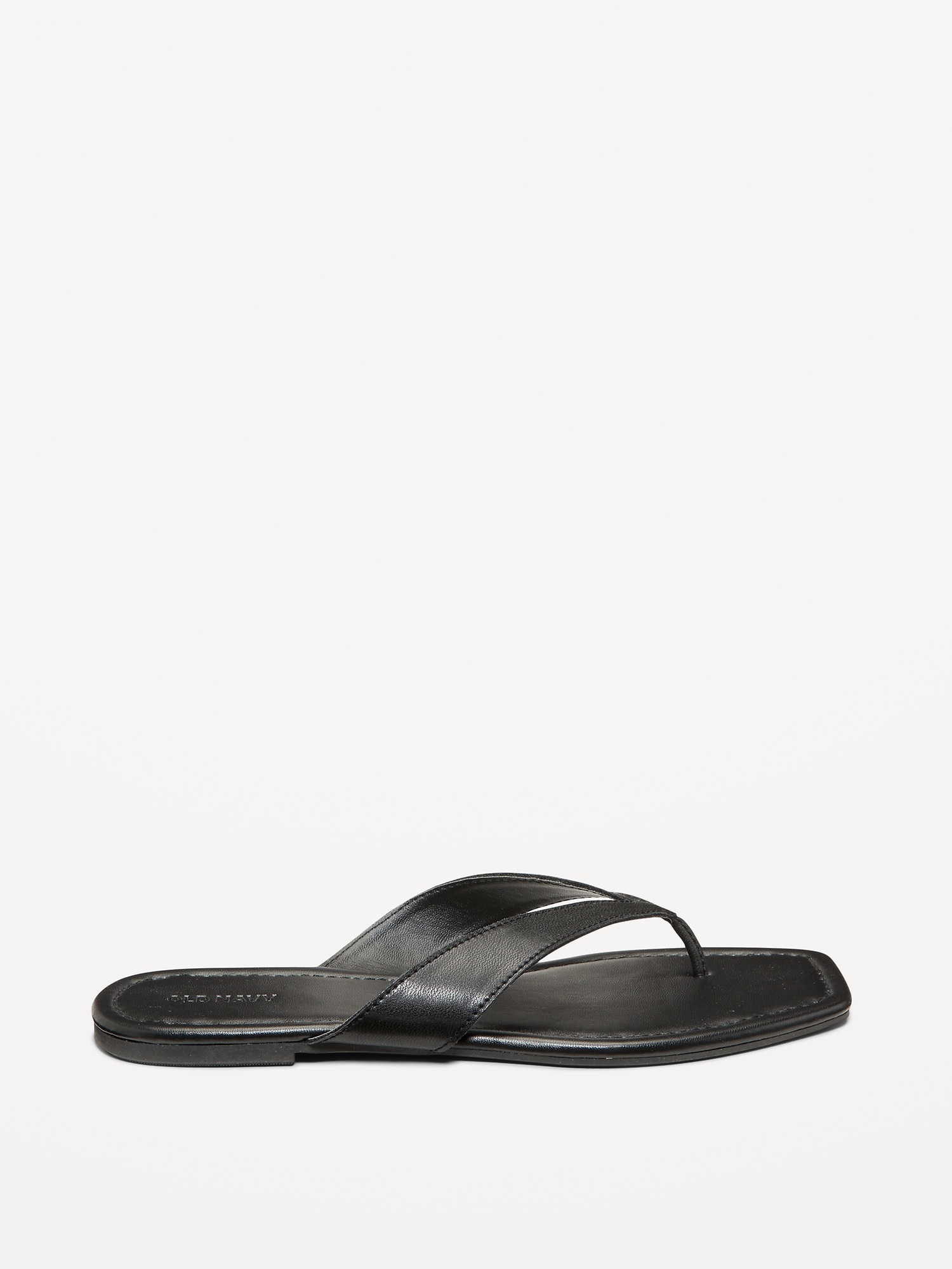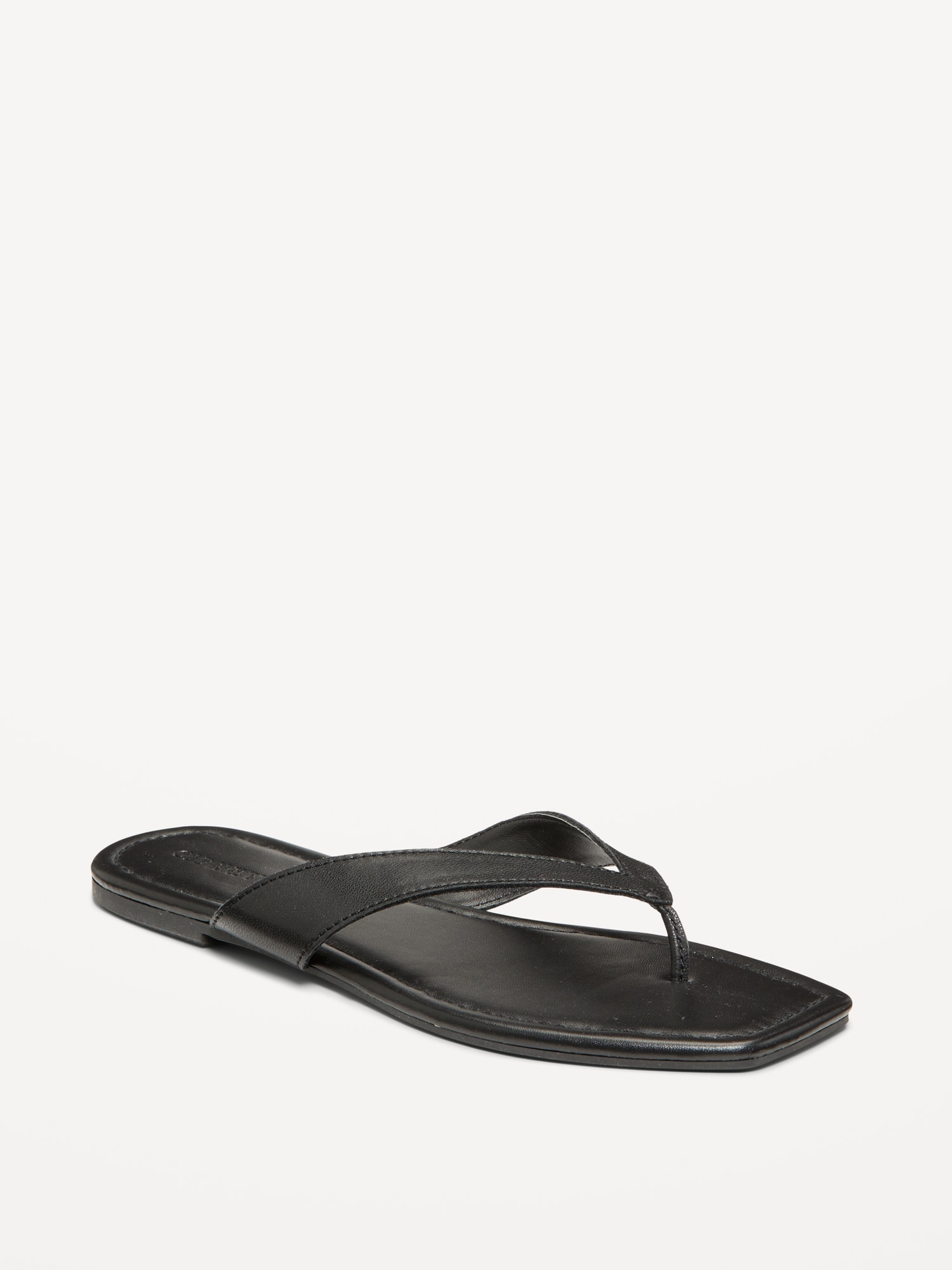 Faux-Leather Flip Flop for Women: faux leather upper, square toe, firm foot bed, slide-on style, #766739