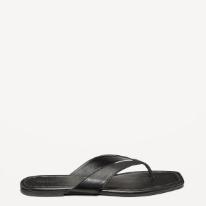 Faux-Leather Flip Flop for Women: faux leather upper, square toe, firm foot bed, slide-on style, #766739