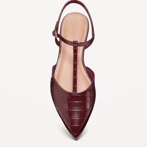 Faux-Leather Mary Jane T-Strap Flats for Women: pointed toe, buckled ankle strap with T-strap, firm footbed, textured outsole, #787915