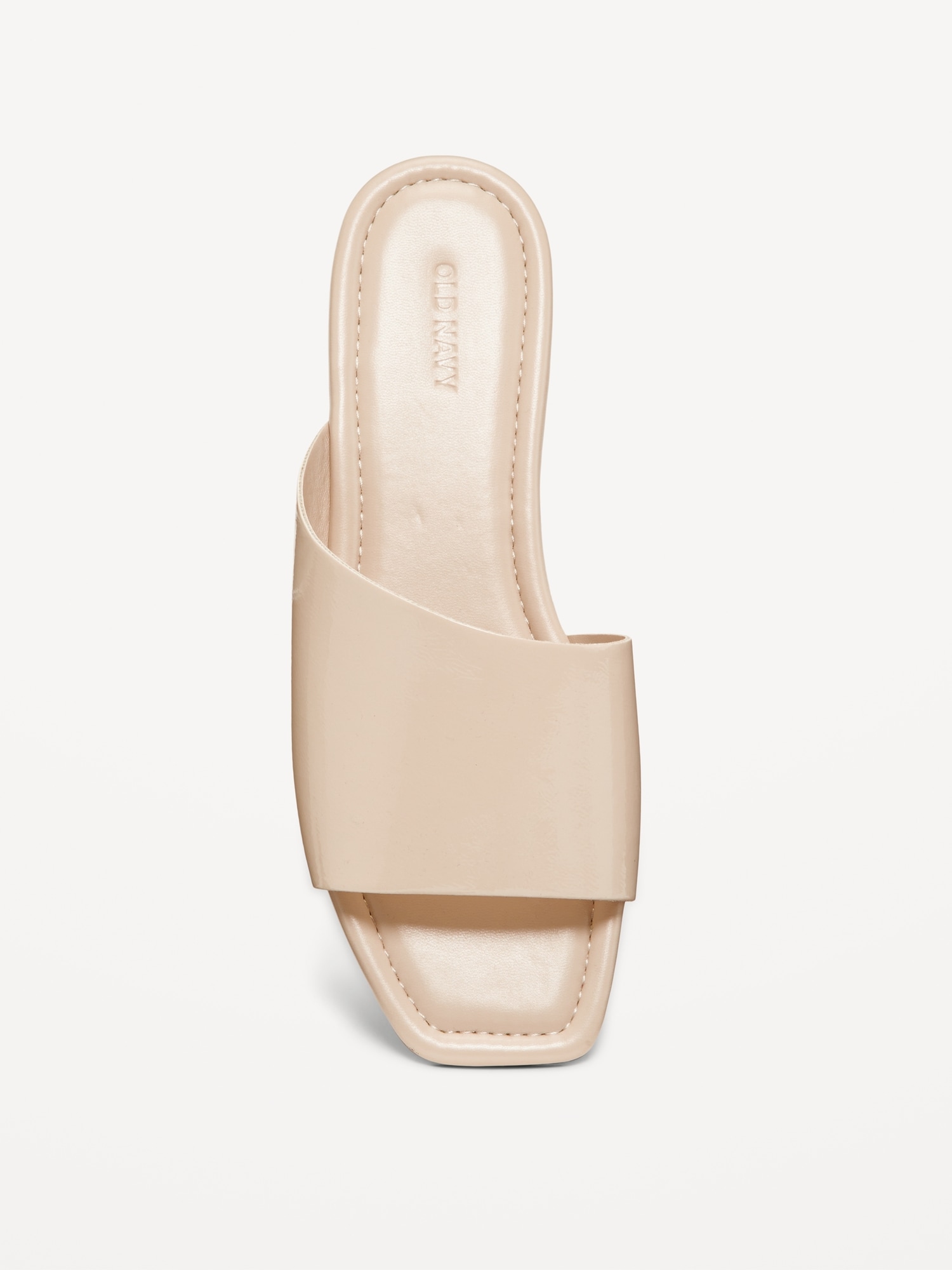 Faux-Leather Slide Sandals for Women: faux leather upper, square toe, cushioned foot bed, slide-on style, #766743