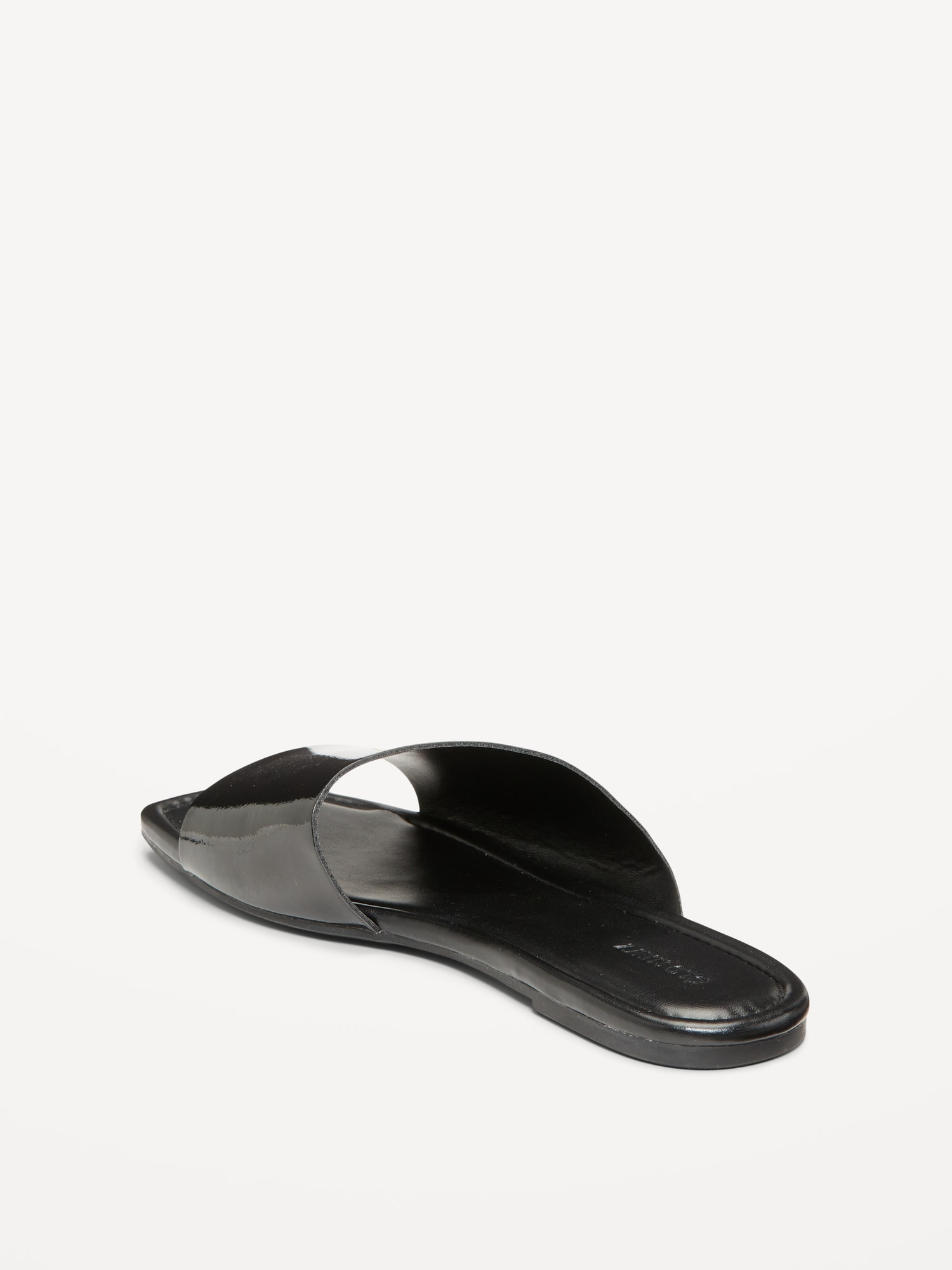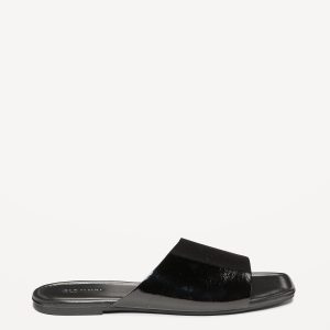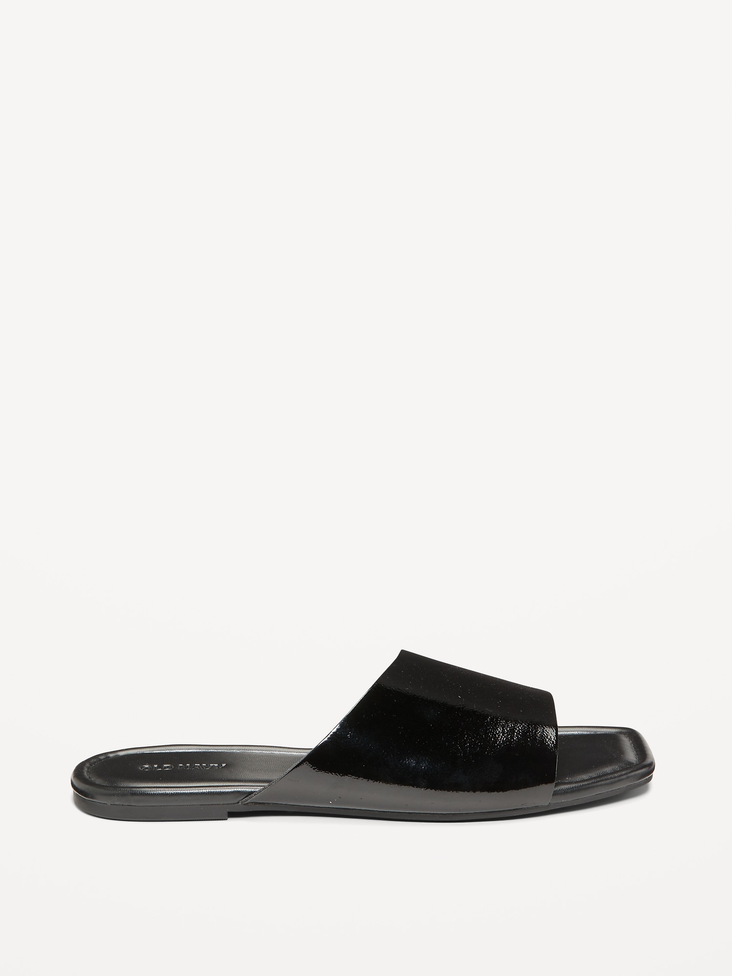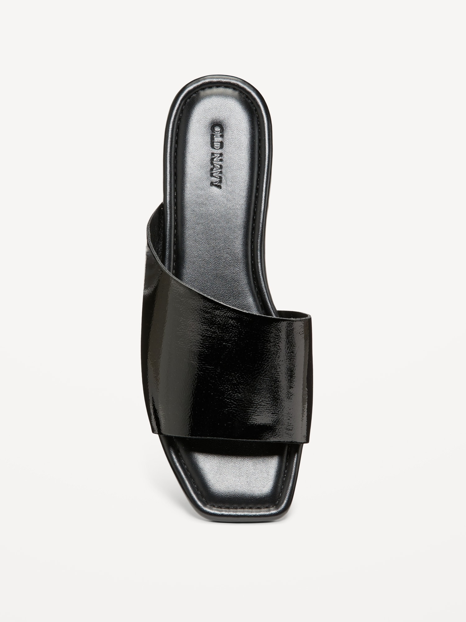 Faux-Leather Slide Sandals for Women: faux leather upper, square toe, cushioned foot bed, slide-on style, #766743