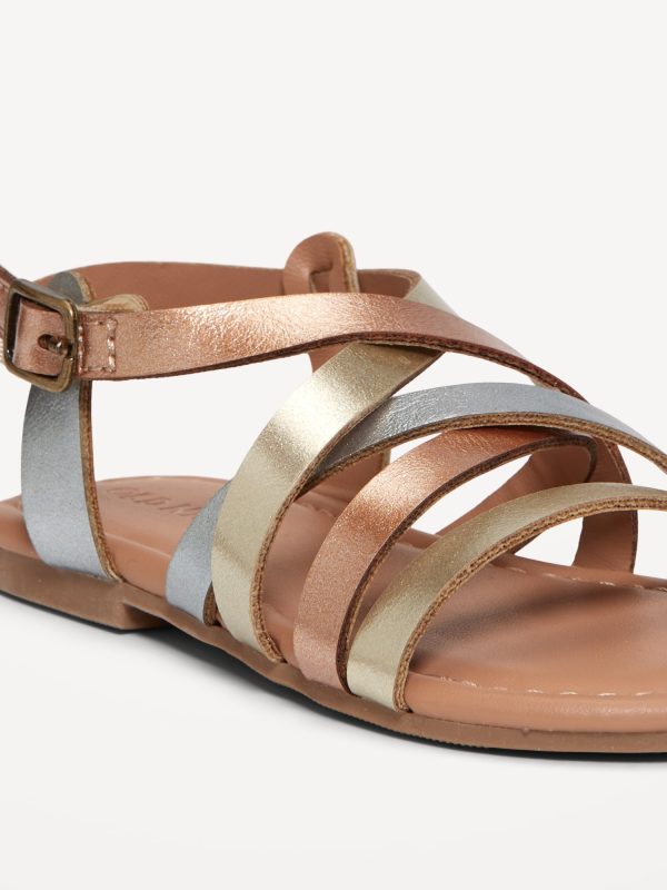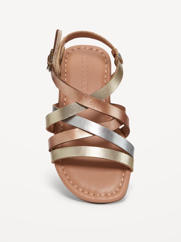 Faux-Leather Strappy Sandals for Toddler Girls: buckled ankle strap, straps across foot, cushioned foot bed, #689153