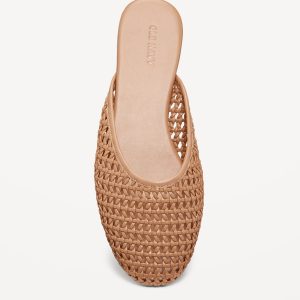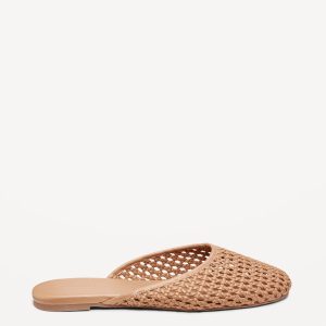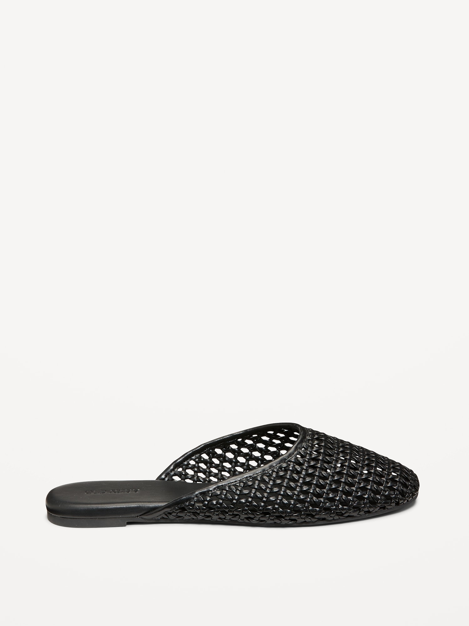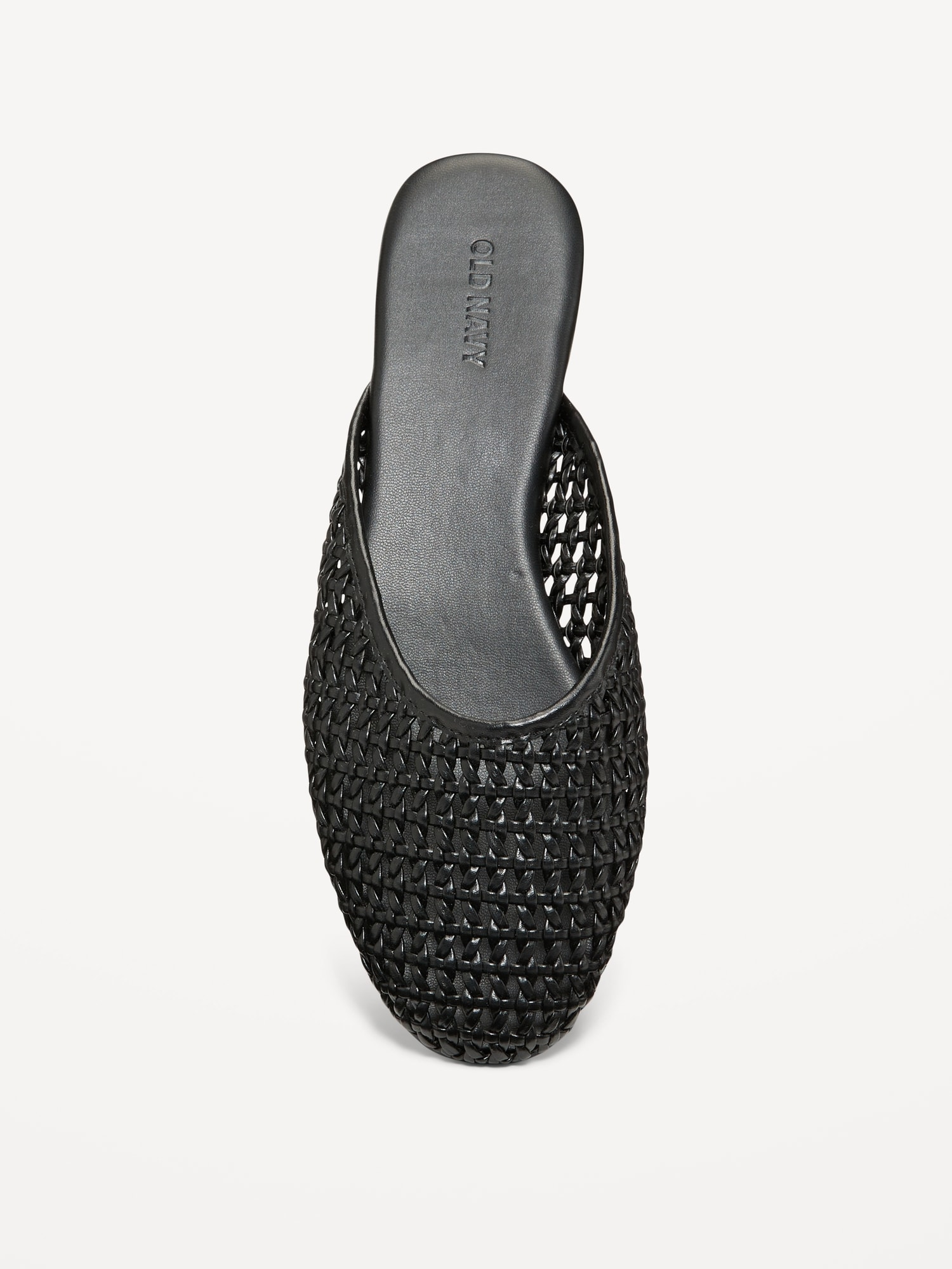 Faux-Leather Woven Mule for Women: faux leather upper, round toe, cushioned foot bed, slide-on style, #748667
