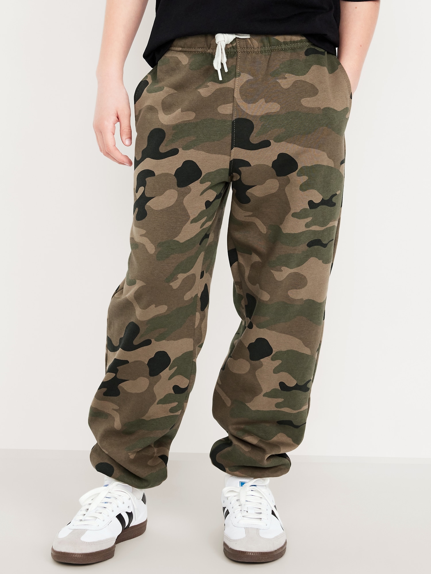 Favorite Fleece Baggy Jogger Sweatpants for Boys: elasticized waist, functional drawstring, on-seam welt pockets, snap-button cargo pockets, cinched leg cuffs, #564944