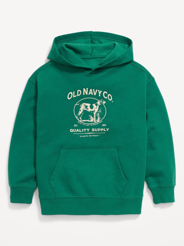 Favorite Fleece Oversized Logo-Graphic Pullover Hoodie for Boys: built-in hood, long sleeves, drop shoulders, kangaroo pocket, logo graphic at front, #799641
