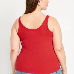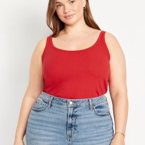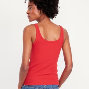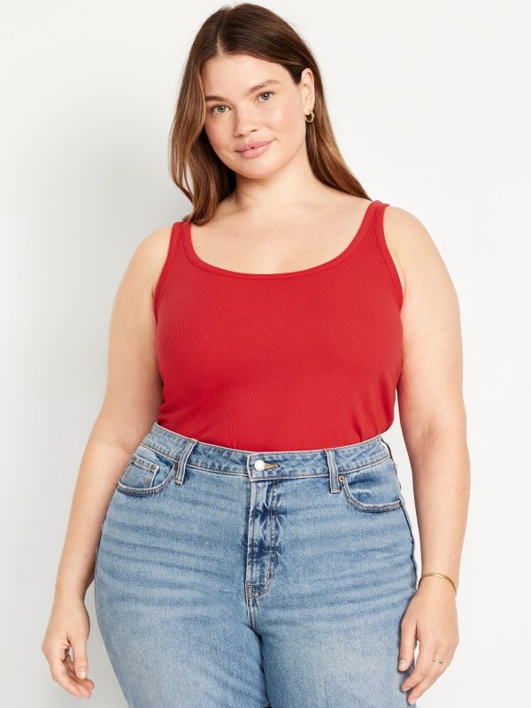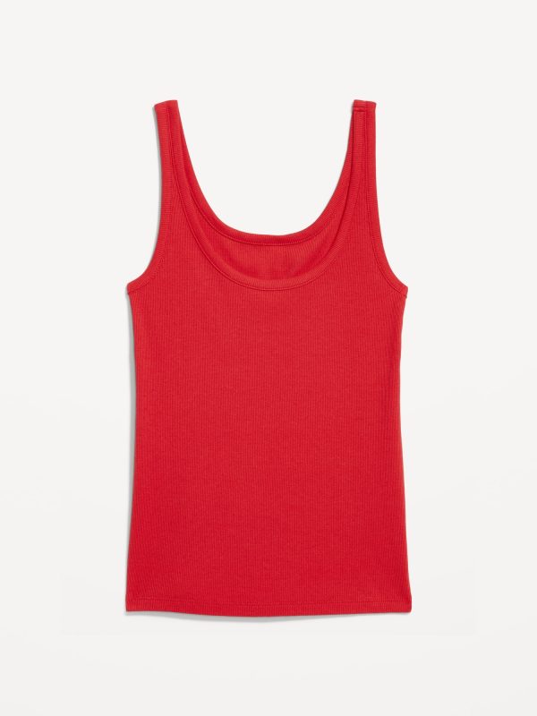 First-Layer Ribbed Scoop-Neck Tank Top: scoop neck, wide straps, #619927