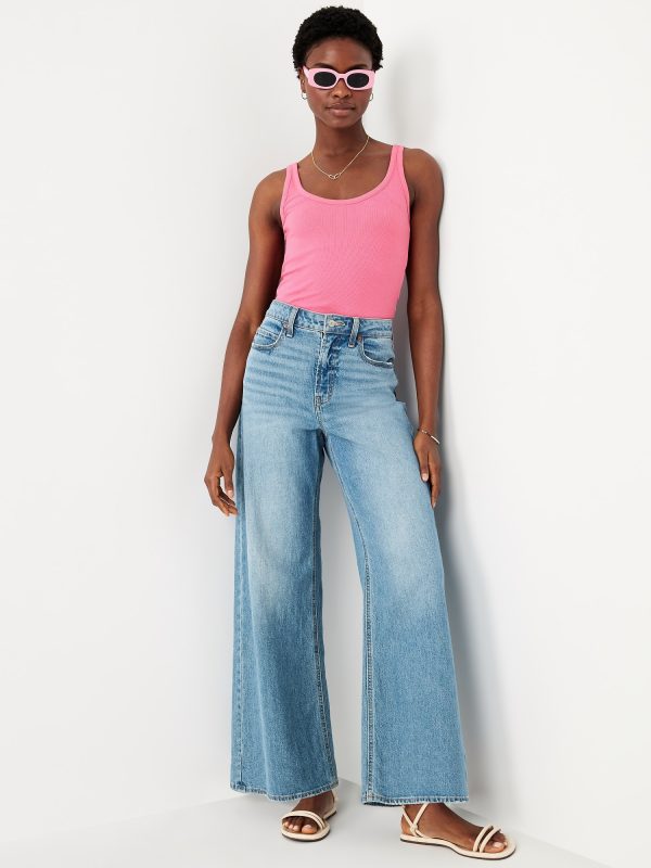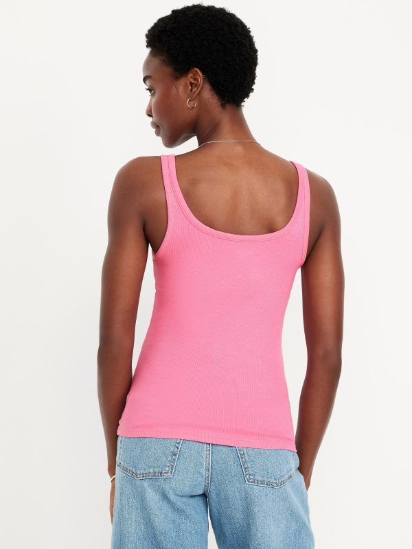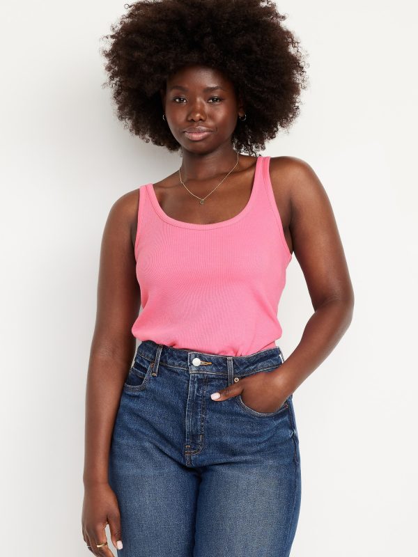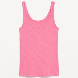 First-Layer Ribbed Scoop-Neck Tank Top: scoop neck, wide straps, #619927