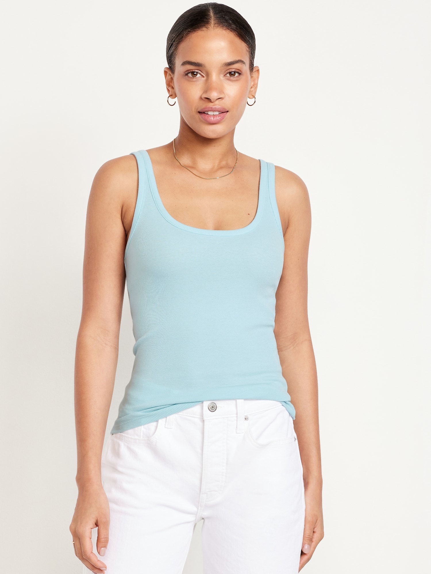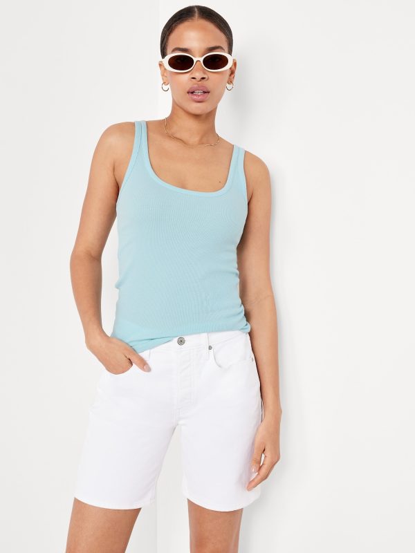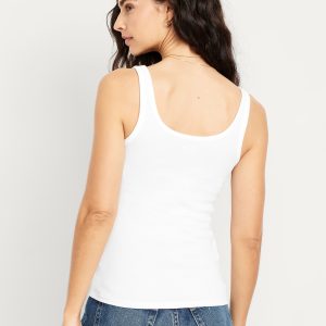 First-Layer Ribbed Scoop-Neck Tank Top