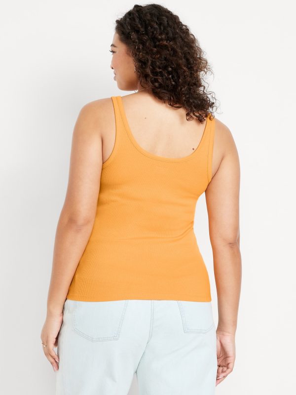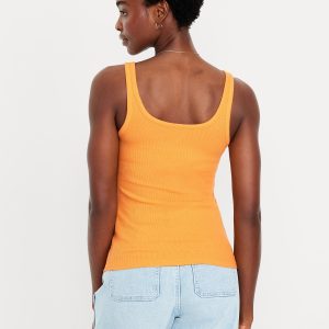 First-Layer Ribbed Scoop-Neck Tank Top: scoop neck, wide straps, #619927