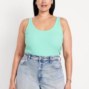 First-Layer Ribbed Scoop-Neck Tank Top: scoop neck, wide straps, #619927
