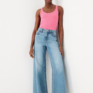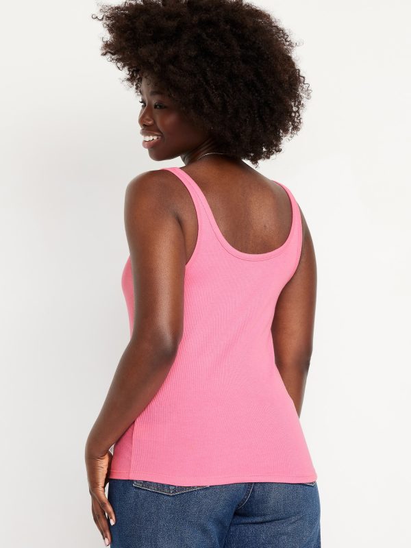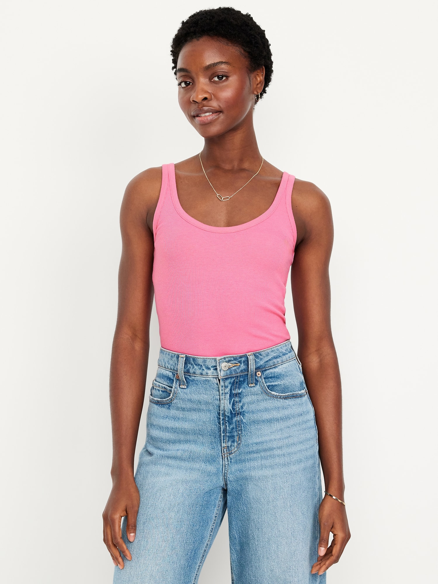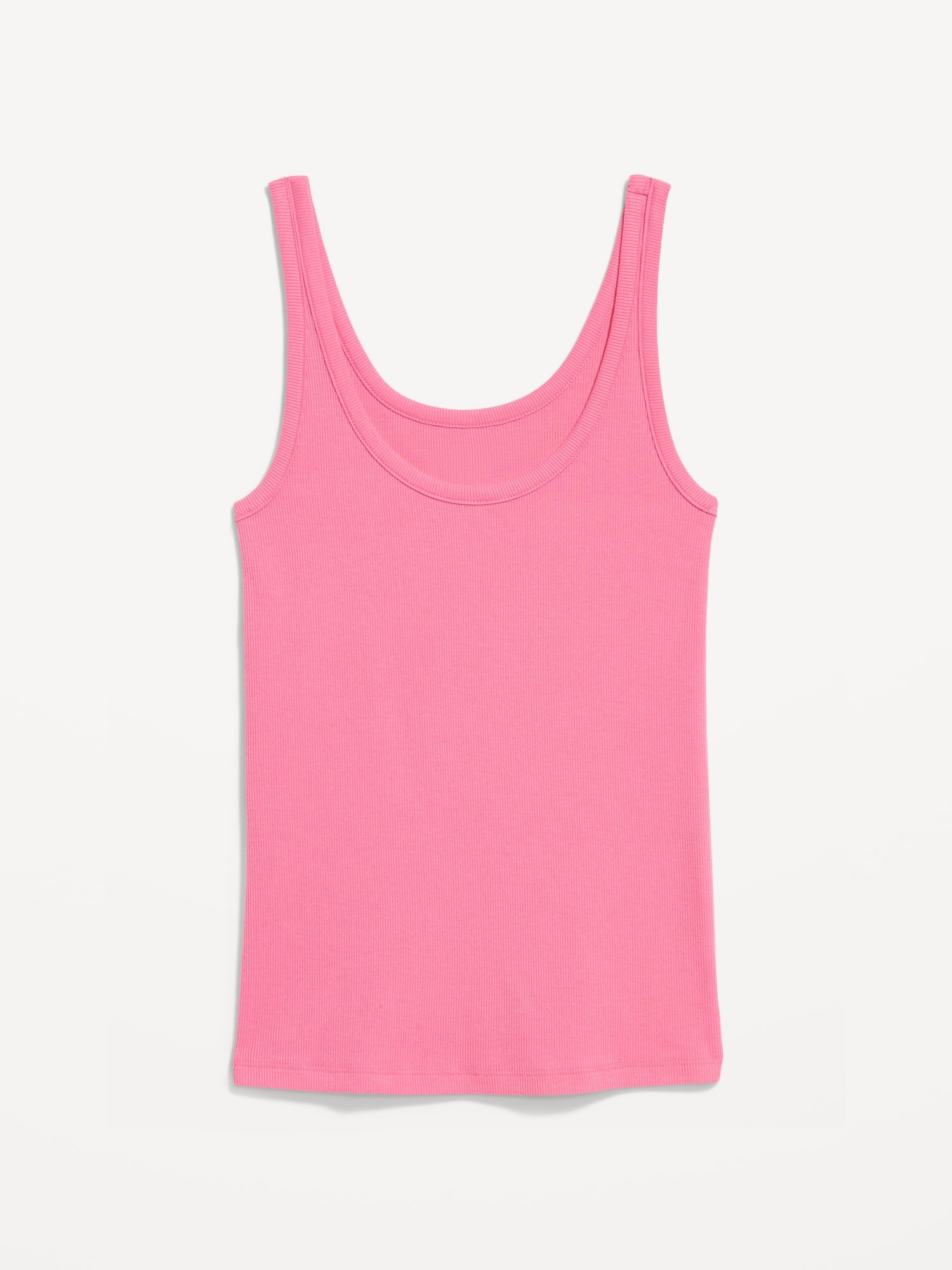 First-Layer Ribbed Scoop-Neck Tank Top: scoop neck, wide straps, #619927