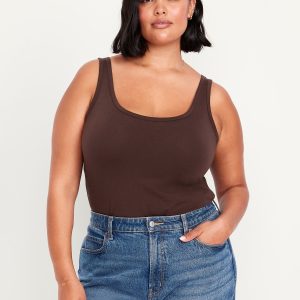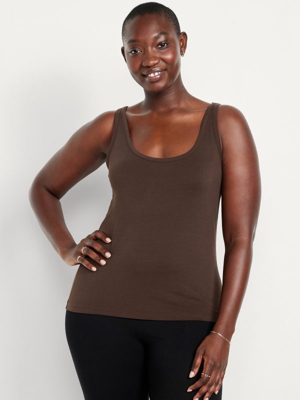 First-Layer Scoop-Neck Tank Top: scoop neck, wide straps, #619919
