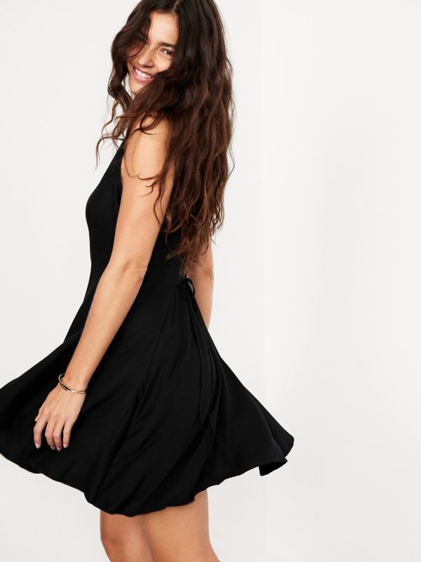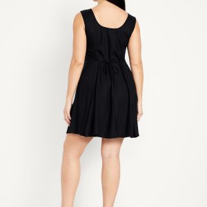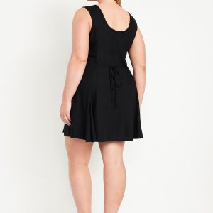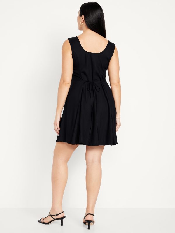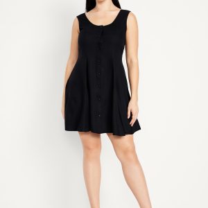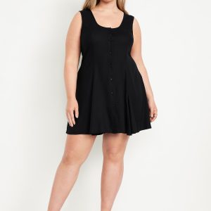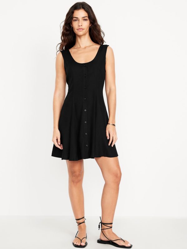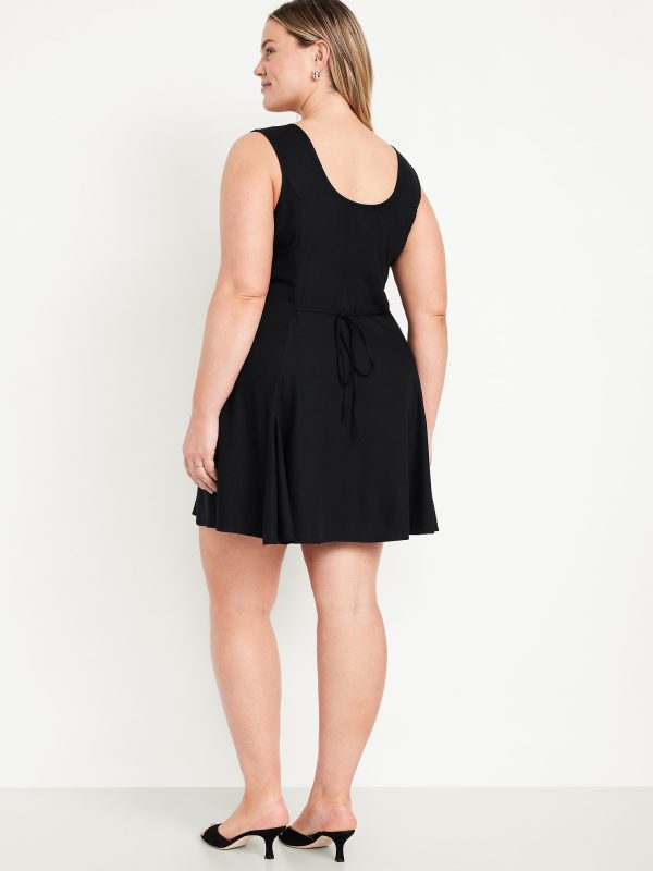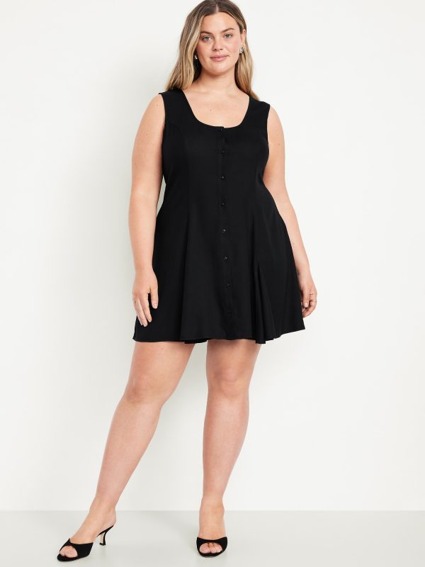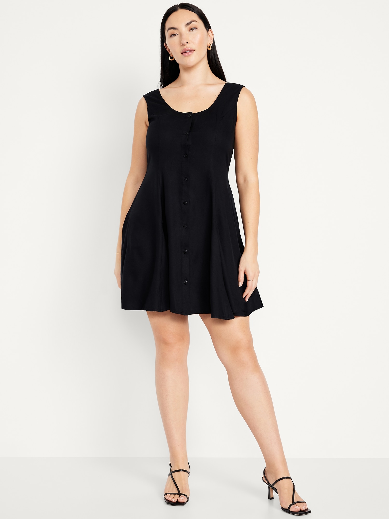 Fit & Flare Crepe Button-Front Mini Dress: scoop neck, wide straps, tie-back waist, full button front, princess seams, #798239
