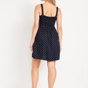 Fit & Flare Crepe Mini Dress: Our strappy fit and flare that’s an instant classic.sweetheart neckline, wide adjustable straps, on-seam pockets, smocked back, seamed waist, #798221