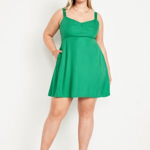 Fit & Flare Crepe Mini Dress: Our strappy fit and flare that’s an instant classic.sweetheart neckline, wide adjustable straps, on-seam pockets, smocked back, seamed waist, #798221