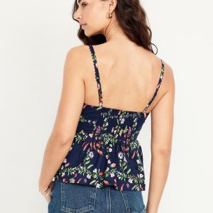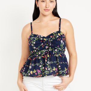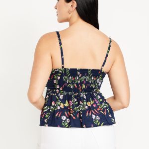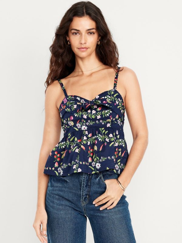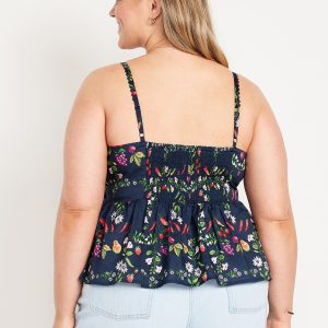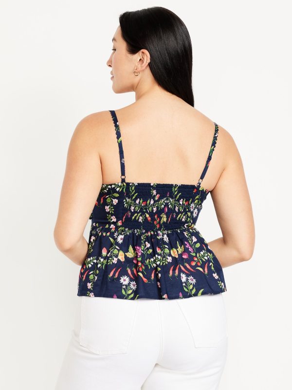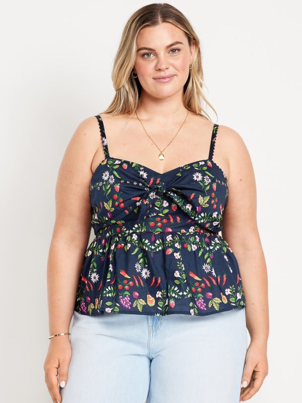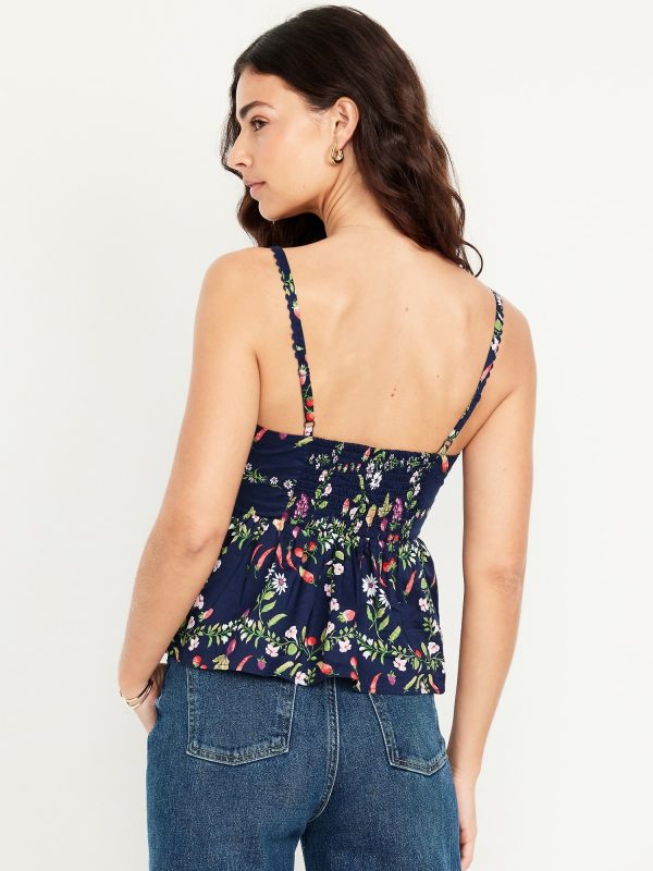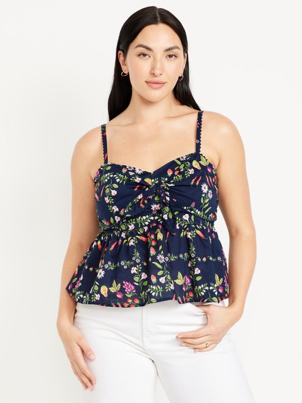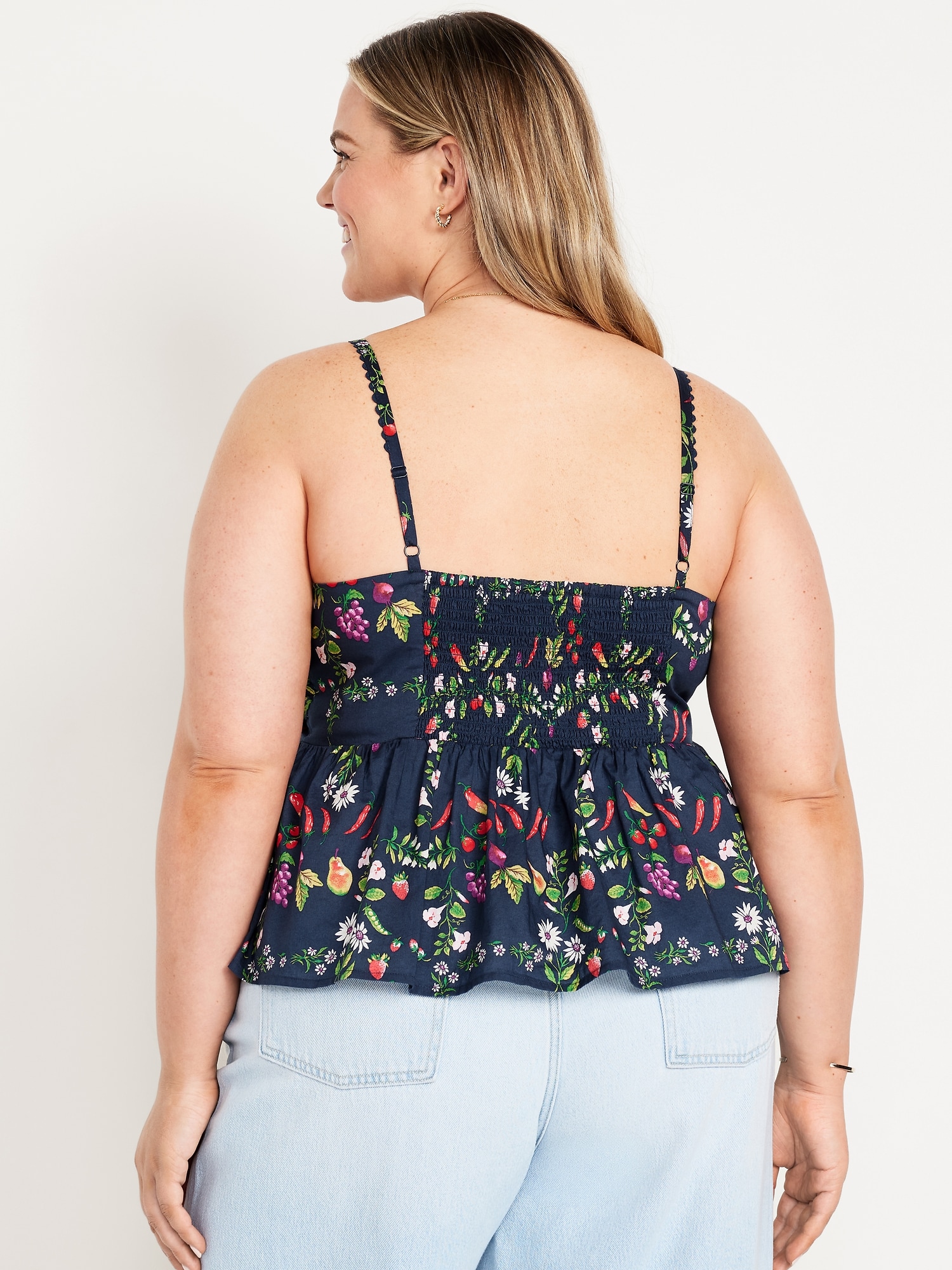 Fit & Flare Floral Peplum Top: knotted sweetheart neckline, adjustable straps, smocked back, peplum hem, floral and fruit print, #764190