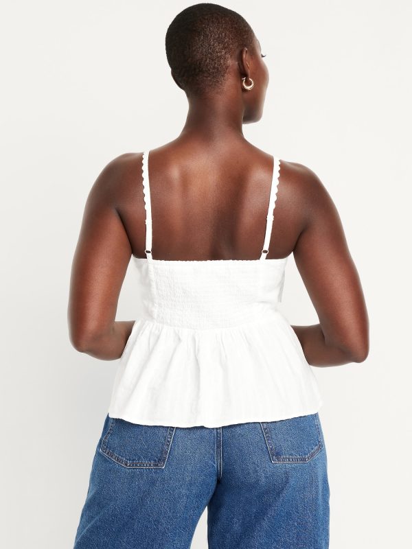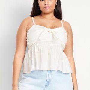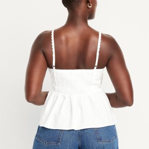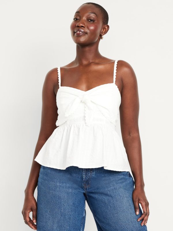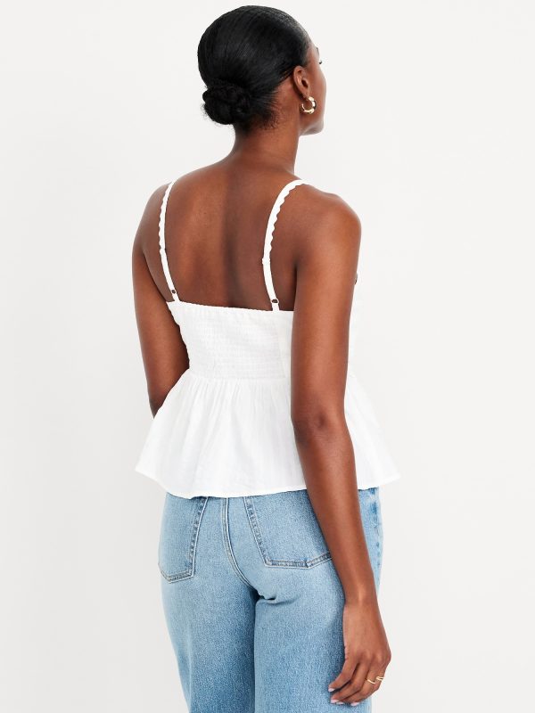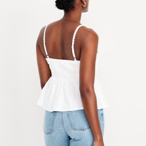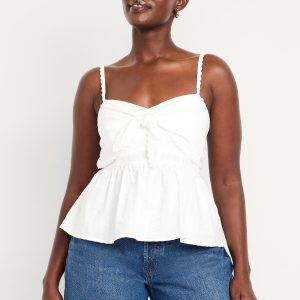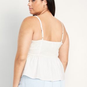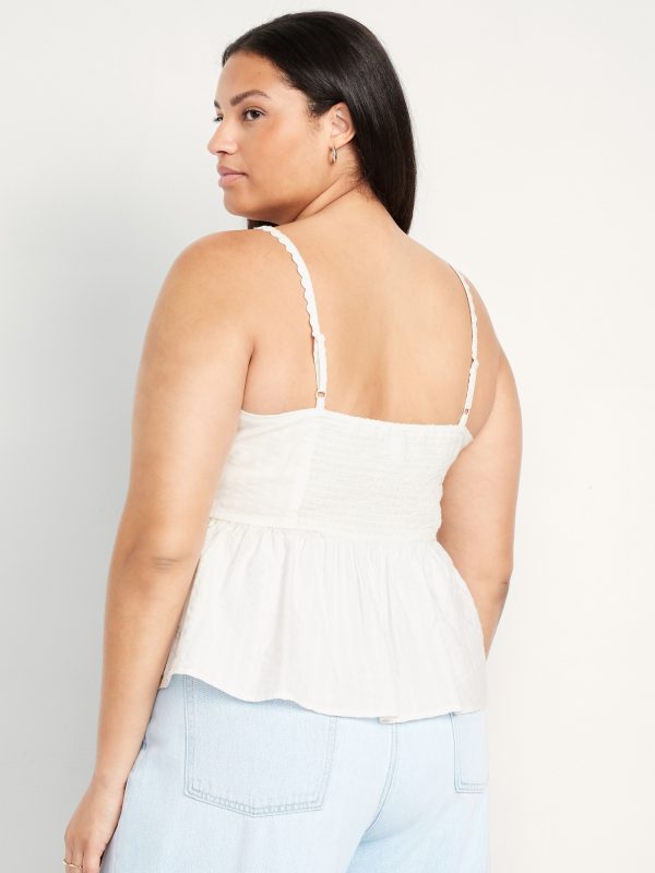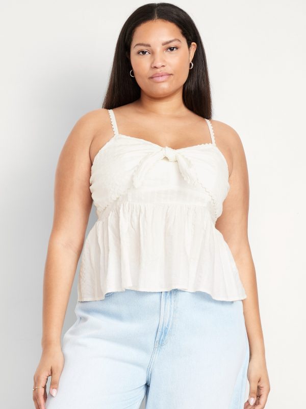 Fit & Flare Seersucker Peplum Top: knotted sweetheart neckline, adjustable straps, smocked back, peplum hem, floral and fruit print, #764190