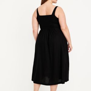 Fit & Flare Sleeveless Linen-Blend Midi Dress