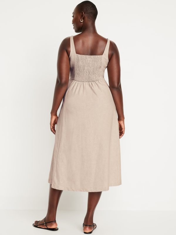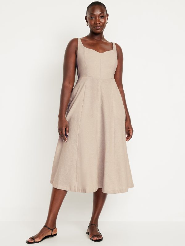 Fit & Flare Sleeveless Linen-Blend Midi Dress