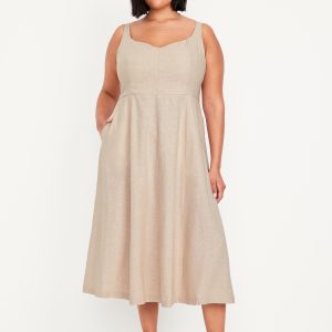 Fit & Flare Sleeveless Linen-Blend Midi Dress