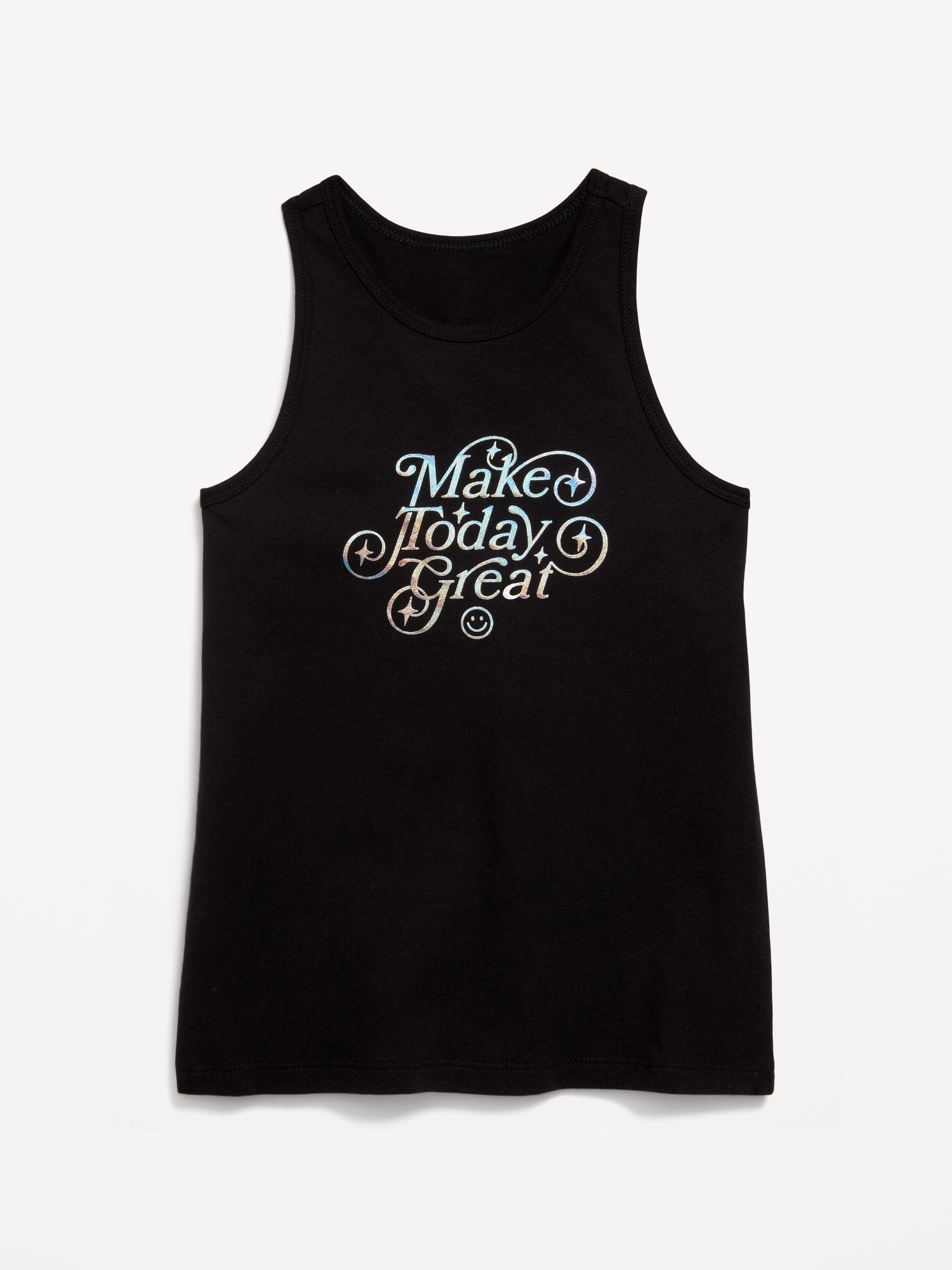 Fitted Graphic Back-Cutout Tank Top for Girls