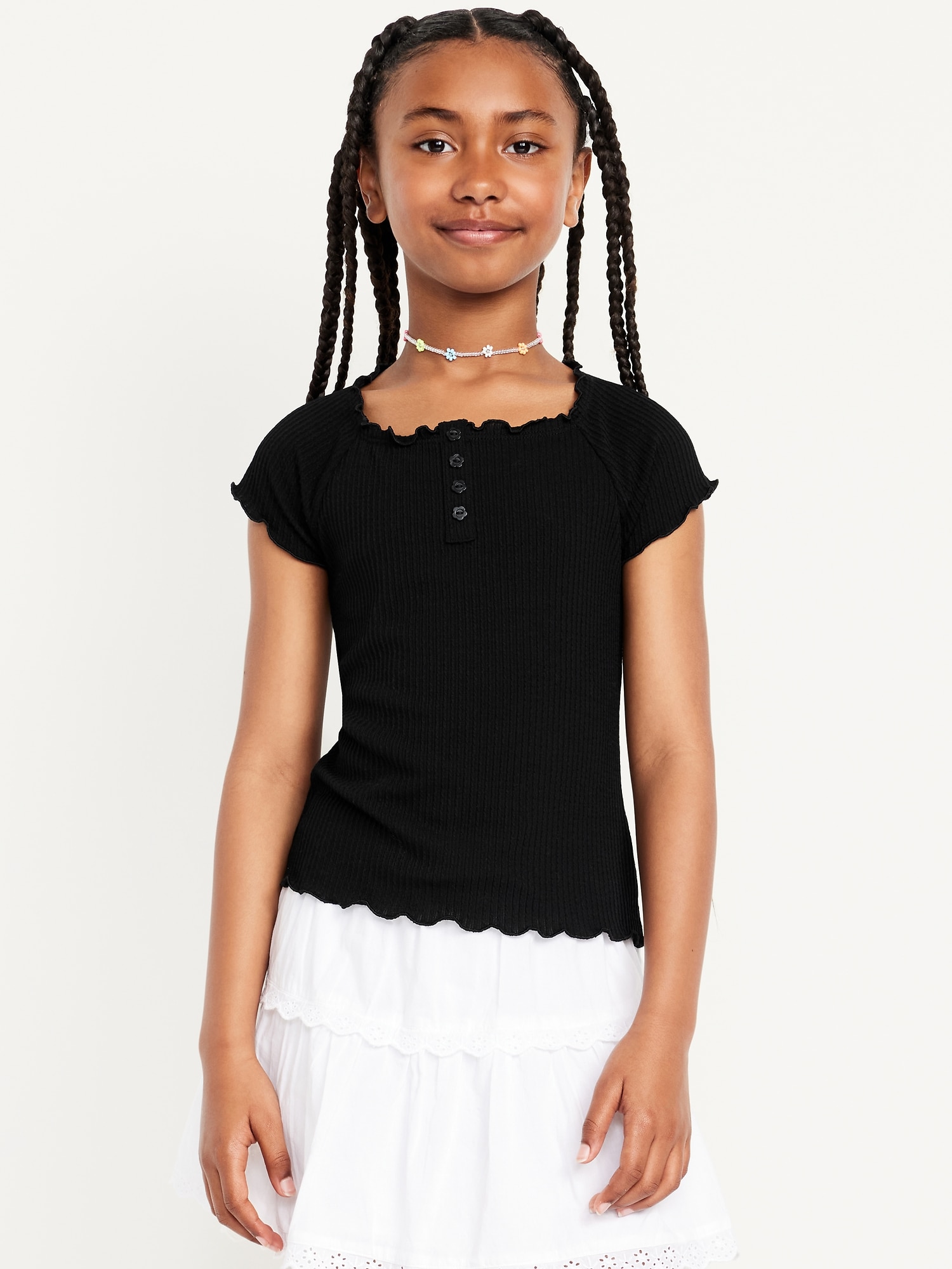 Fitted Short-Sleeve Lettuce-Edge Top for Girls