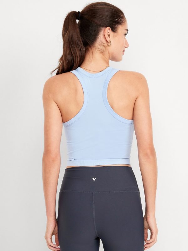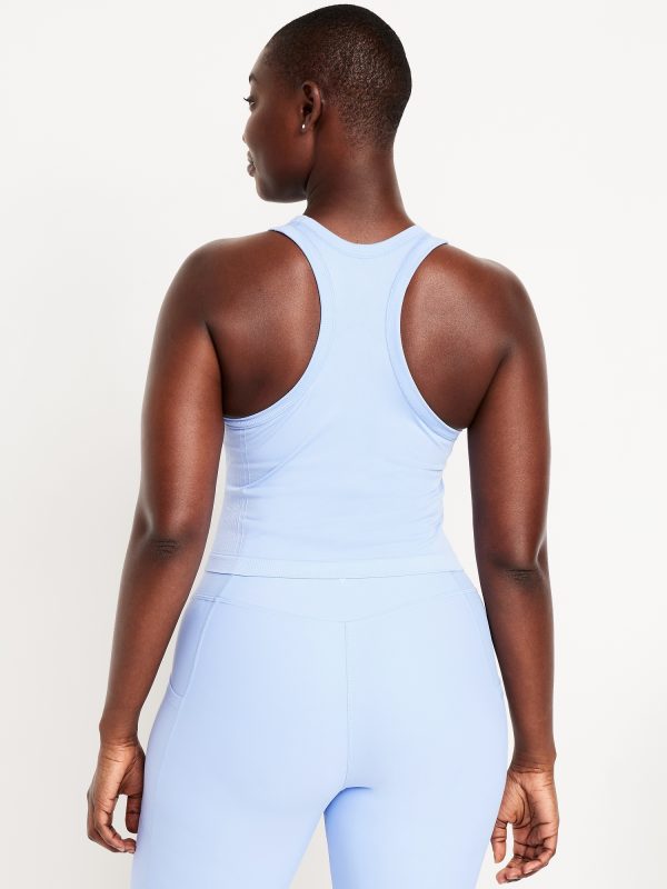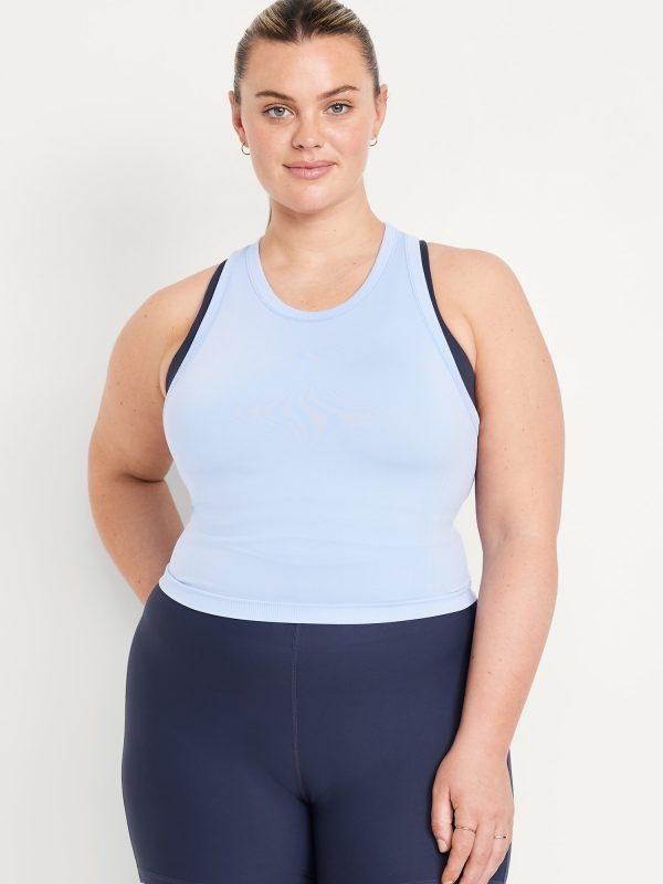 Fluid Seamless Fitted Crop Tank Top: Featuring Fluid Seamless, for breathable, barely-there feels.rib-knit panels at sides and back, crew neck, racerback, go-dry wicks moisture, #848722