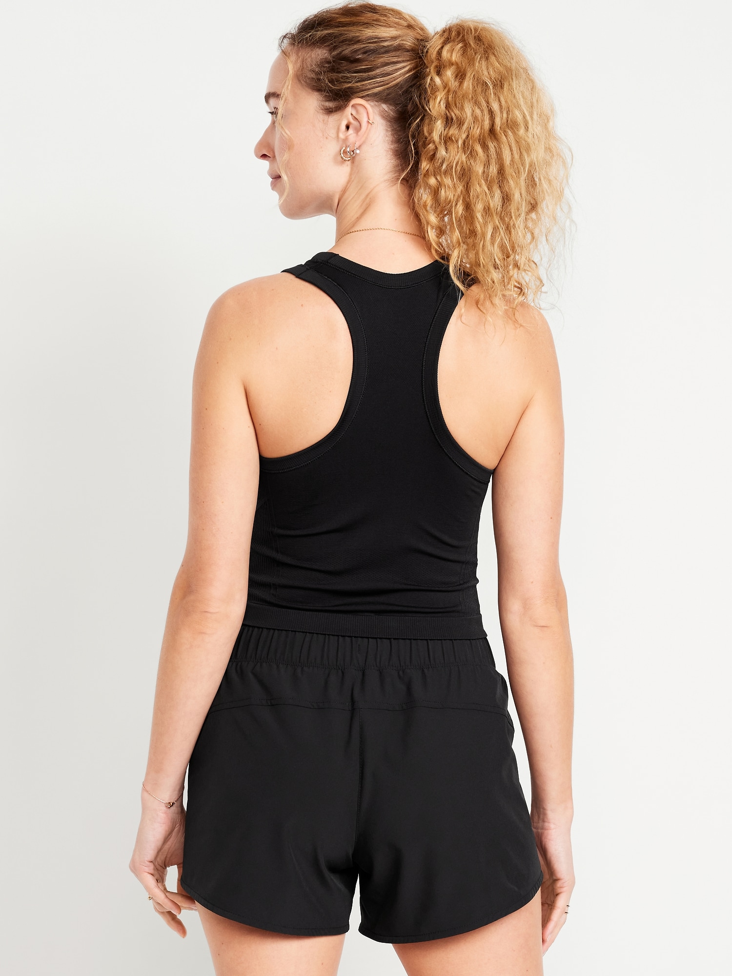 Fluid Seamless Fitted Crop Tank Top: Featuring Fluid Seamless, for breathable, barely-there feels.rib-knit panels at sides and back, crew neck, racerback, go-dry wicks moisture, #848722
