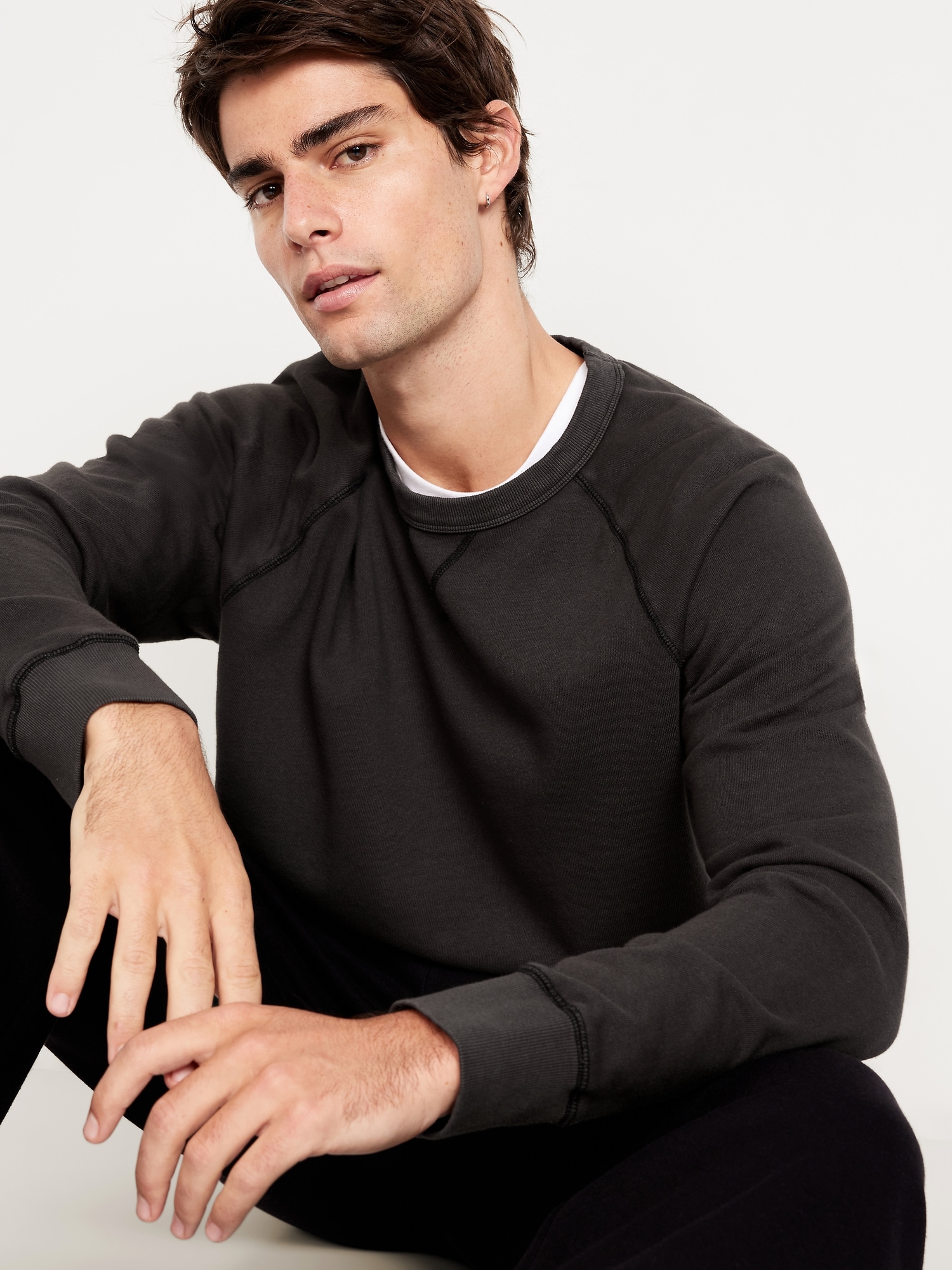 Garment-Dyed Crew-Neck Sweatshirt: crew neck, long raglan sleeves, front graphic varies, rib-knit trim, pullover style, #761169