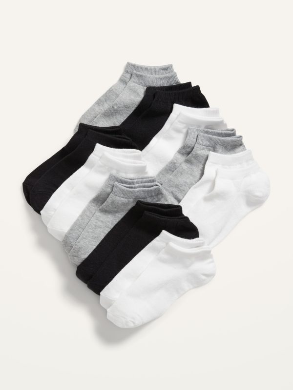 Gender-Neutral Ankle Socks 10-Pack for Kids: Pack includes 10 pairs of ankle socks in assorted solid colors., Rib-knit ankle-length cuffs., Soft-knit fabric, with comfortable stretch., Notched seams at toe and heel for added comfort., These socks are totally comfy & gender-neutral, too. Wearable & shareable for him, for her, for them., #822535