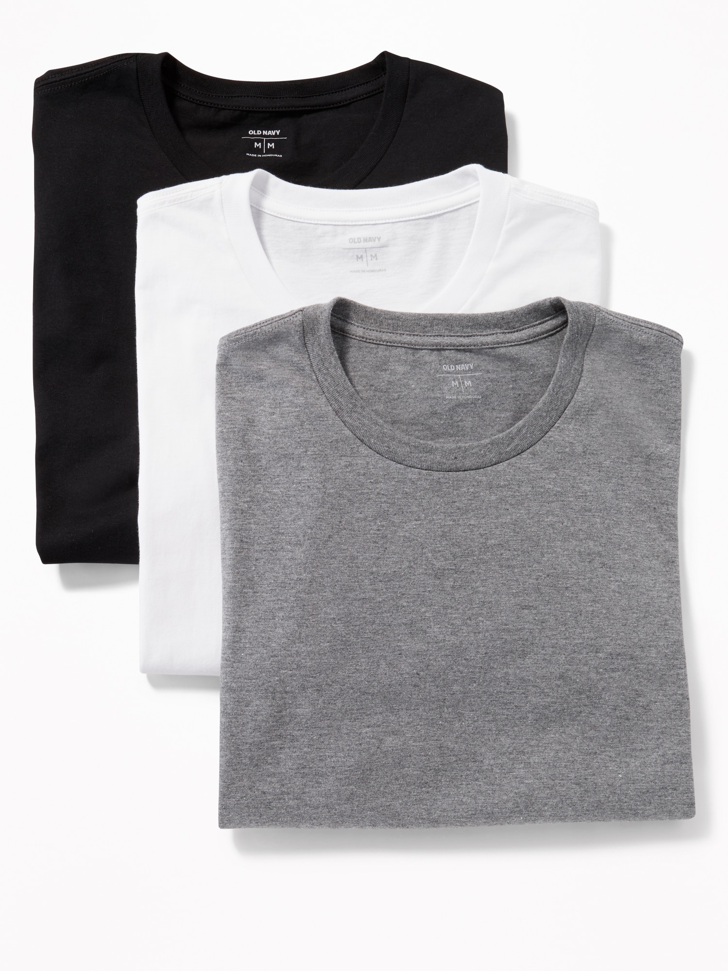 Go-Dry Crew-Neck T-Shirts 3-Pack: Pack includes 3 crew-neck tees., Rib-knit crew-neck., Short sleeves., Go-Dry moisture-wicking technology helps keep you dry and comfortable., Pieced trim inside neck for added durability., Tag-free for added comfort., Basic Multi Pack only: 100% cotton (solid colors); 60% cotton, 40% polyester (heather gray color only)., #209758
