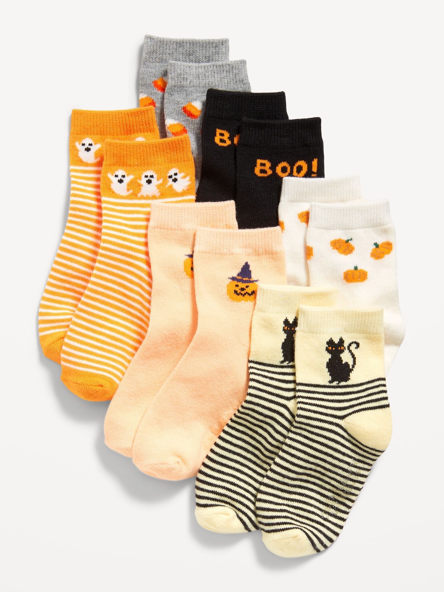 Halloween Crew Socks 3-Pack for Toddler & Baby: This 6-pack of socks is totally comfy & unisex, too. Wearable & shareable for her, for him, for them., Rib-knit cuffs., Soft-knit fabric, with comfortable stretch., Notched seams at toe and heel for added comfort., Textured logo at soles., #832317