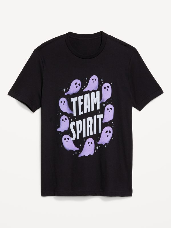 Halloween Graphic T-Shirt: rib-knit crew neck, short sleeves, graphic varies by color, #769590