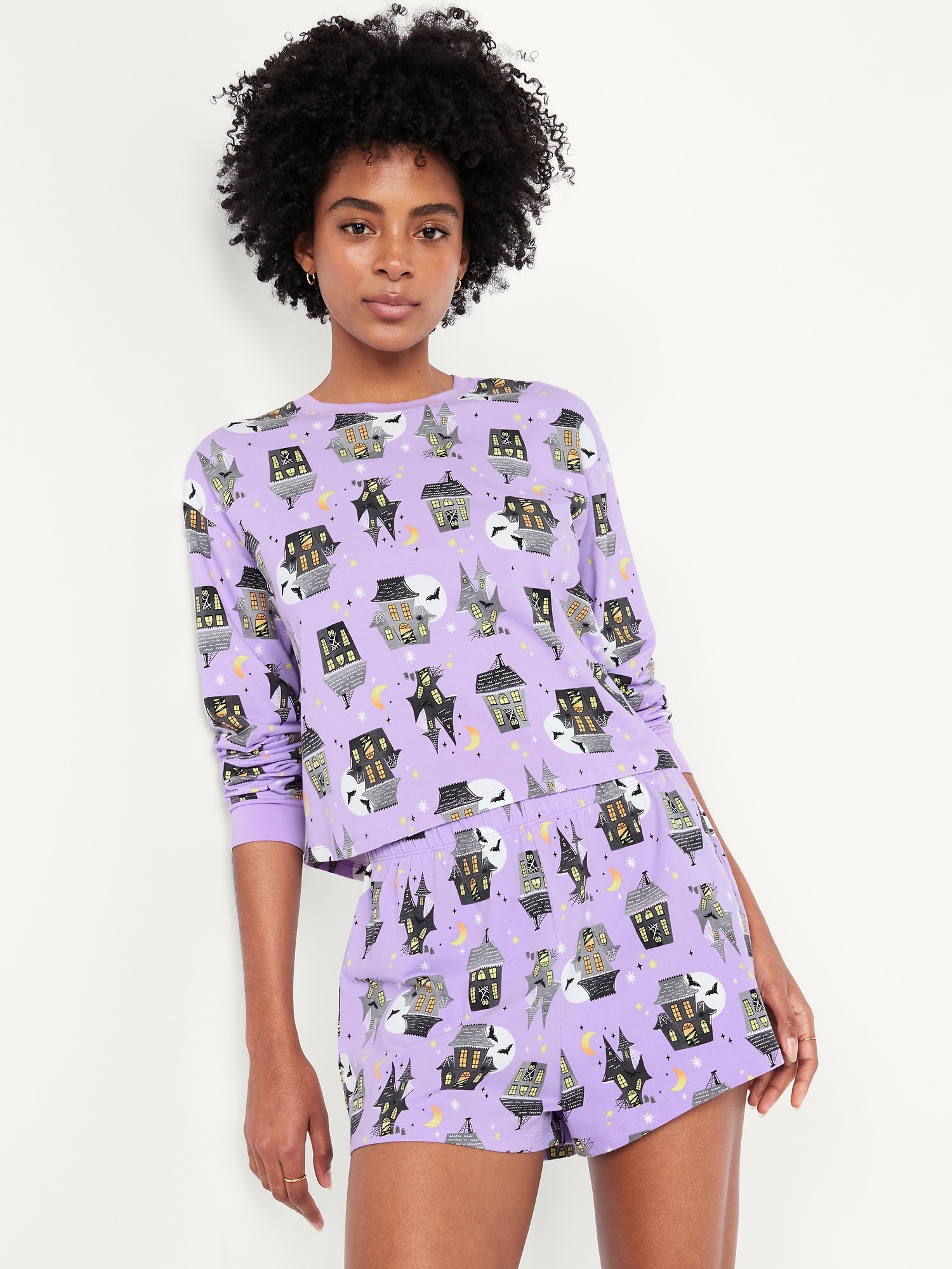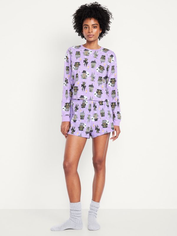 Halloween Pajama Short Set: set includes sleep top and coordinating shorts, crew neck, long drop-shoulder sleeves, elastic-waist sleep shorts, licensed graphic, © Disney, #804829