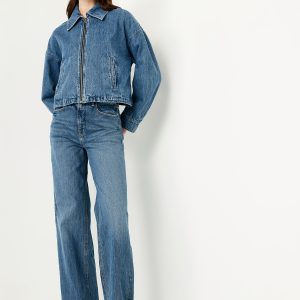 Harrington Zip Jacket: spread collar, drop-shoulder sleeves with snap cuffs, full-zip front, welt pockets, cinched hem, #790492