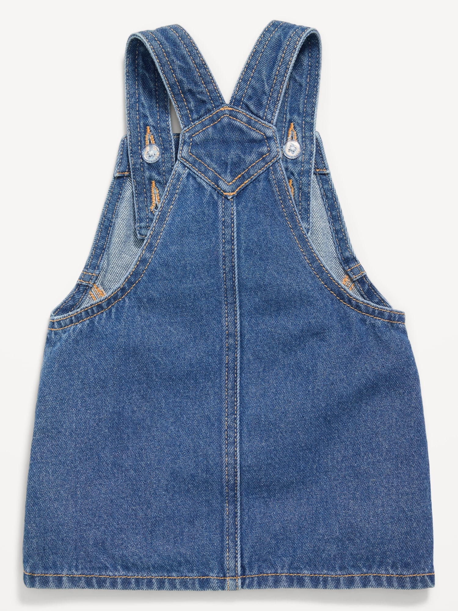 Heart-Pocket Jean Skirtall Dress for Baby: adjustable shoulder straps, heart pocket at chest, #805556