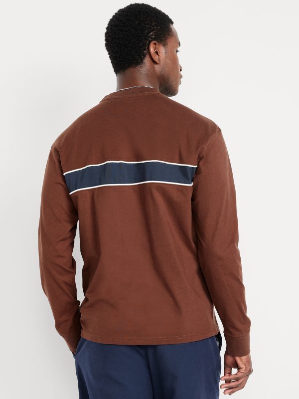 Heavyweight Chest-Stripe T-Shirt: rib-knit crew neck, long sleeves with rib-knit cuffs, contrasting chest stripes, #801794