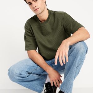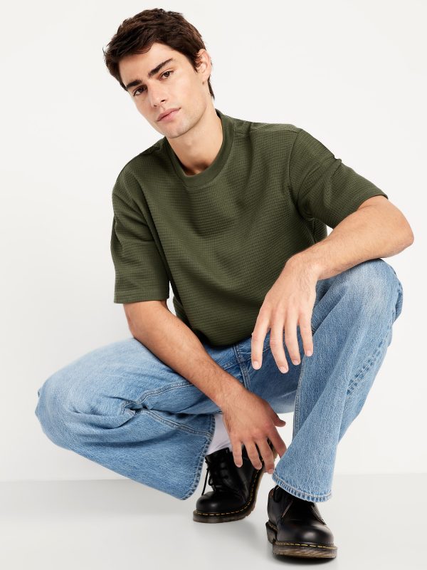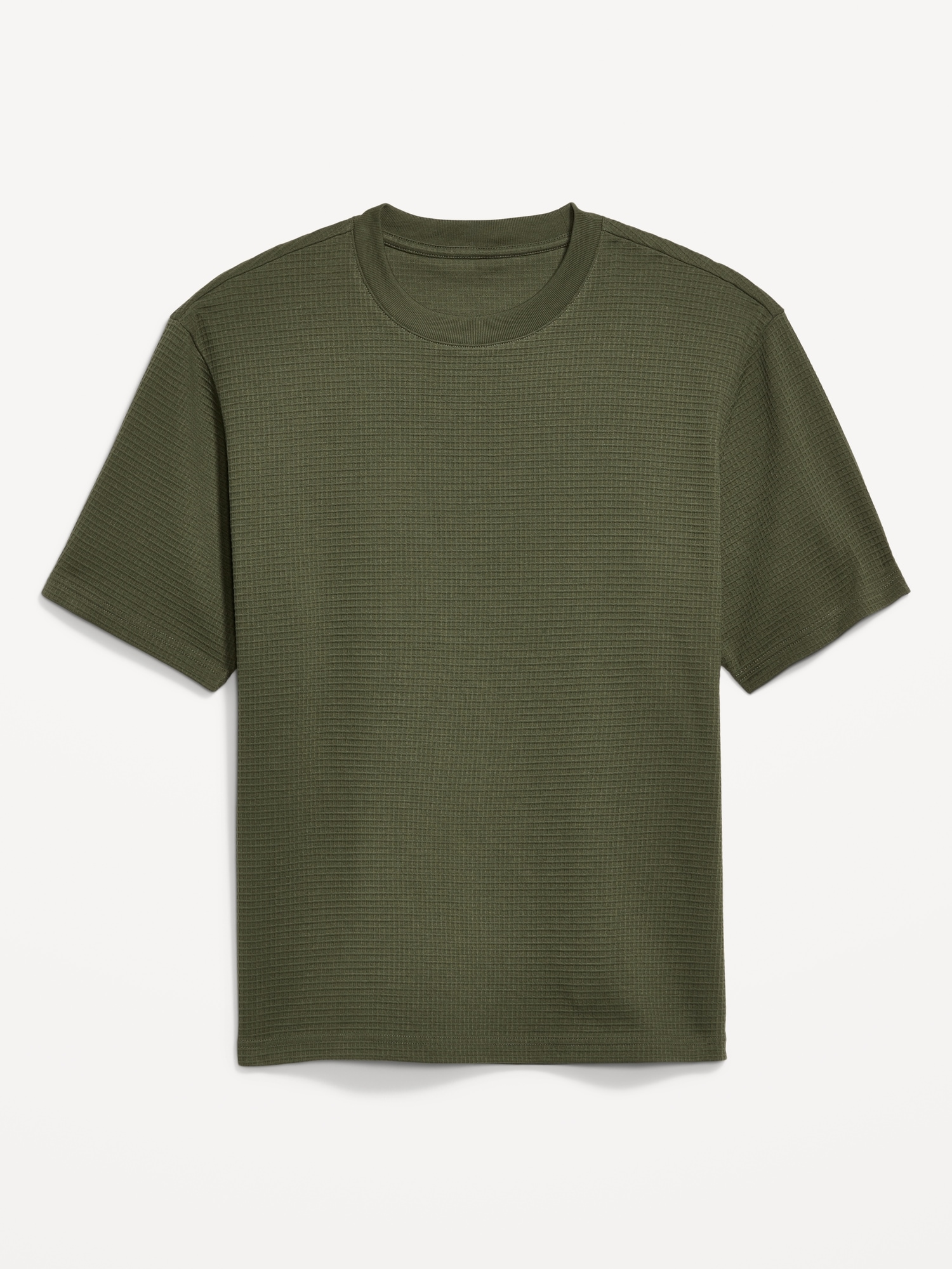 Heavyweight Crew-Neck Waffle T-Shirt: rib-knit crew neck, short sleeves, #764244